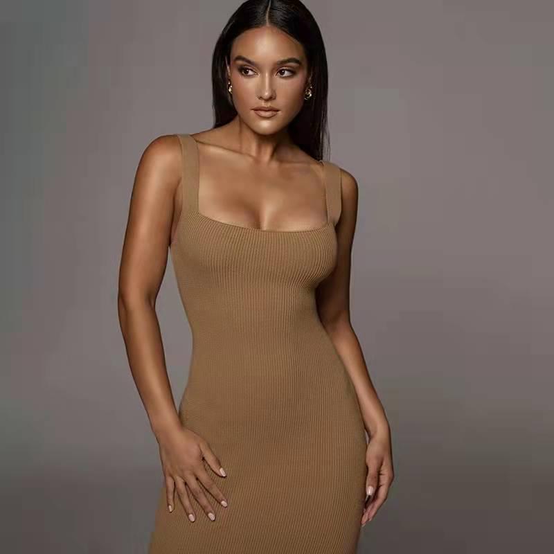 Европейское и американское женское повседневное макси-платье-майка в рубчик, осень 2025