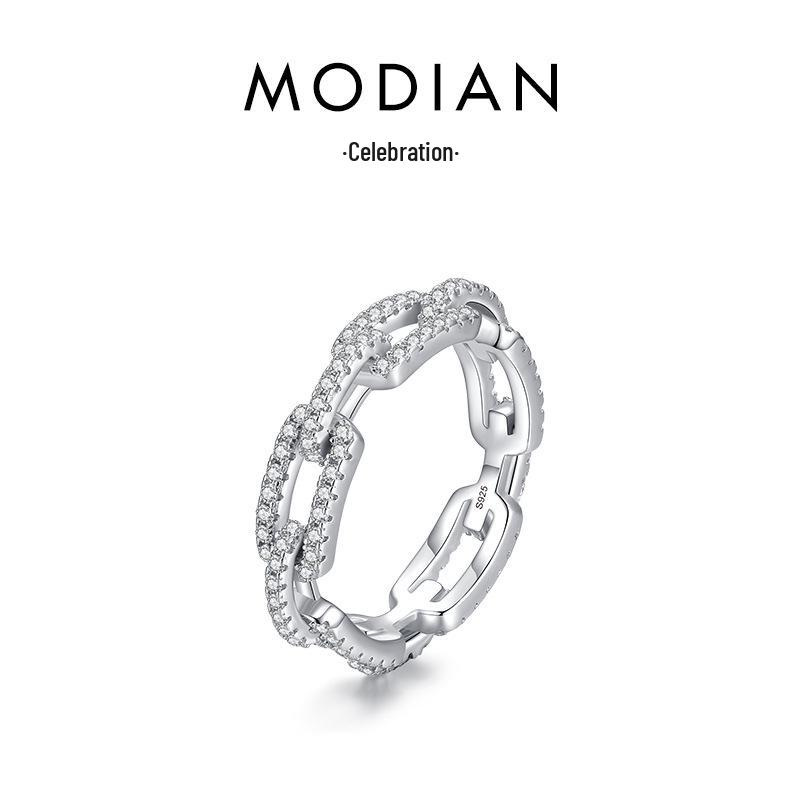 Modian Кольцо из стерлингового серебра 925 пробы с геометрическим бриллиантом - Простая мода, Полый дизайн, Трендовые украшения