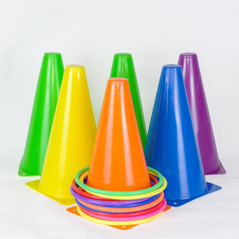 Семицветные пластиковые маркерные конусы и кольца для тренировок на открытом воздухе