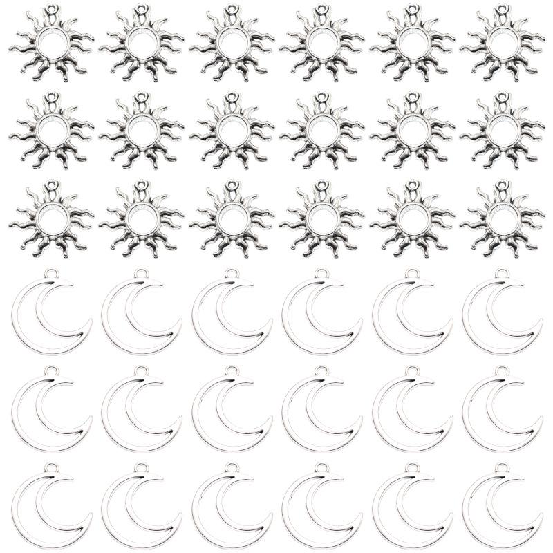 Ретро Сплав Античное Серебро Филигрань Солнце и Луна Ювелирные Подвески - Ожерелья и Серьги