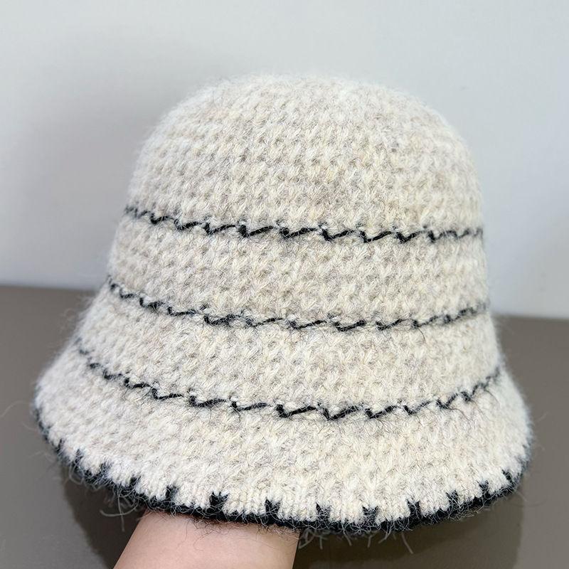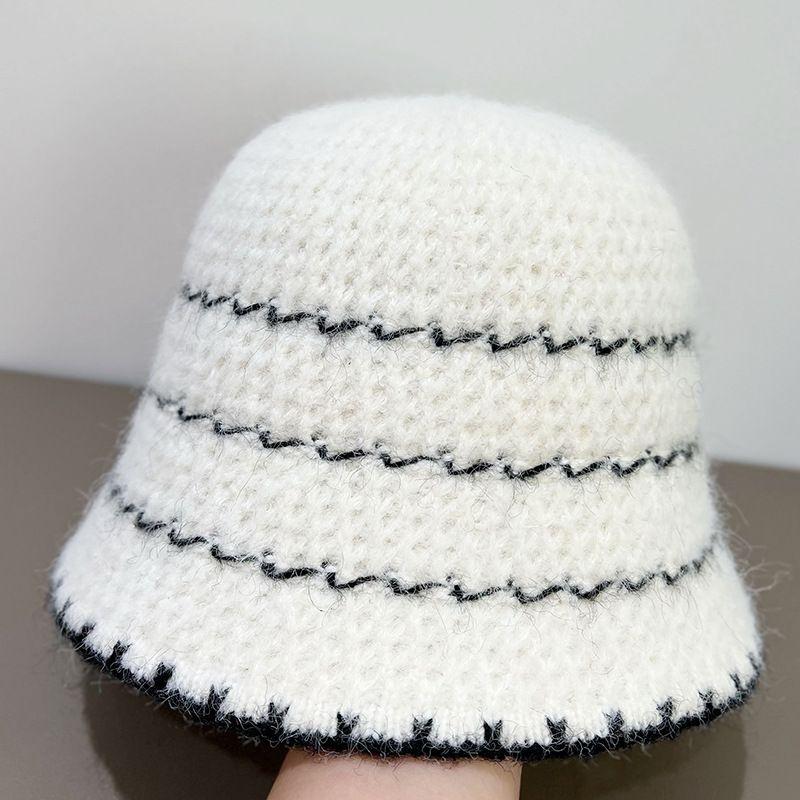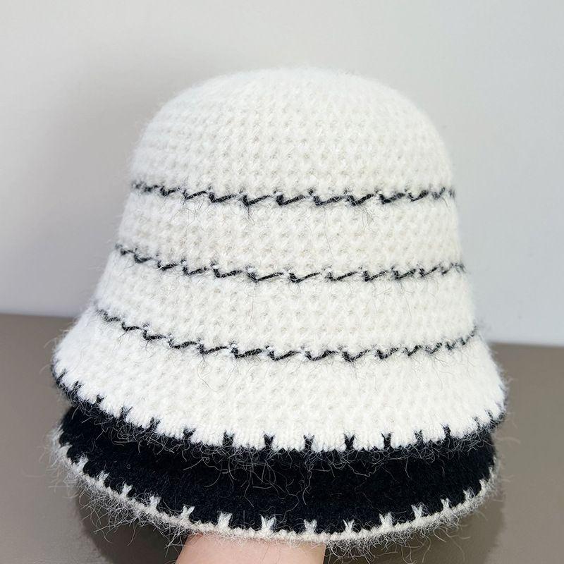 Осенне-зимняя вязаная шляпа-ведро, ретро полосатая вязаная шляпа, женская шляпа-ведро, шляпа-ведро