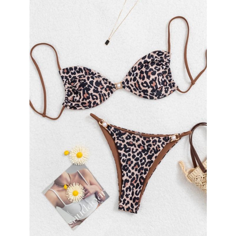 Новый раздельный купальник с леопардовым принтом, на шнуровке, жемчужный, трехточечный, сексуальный купальник