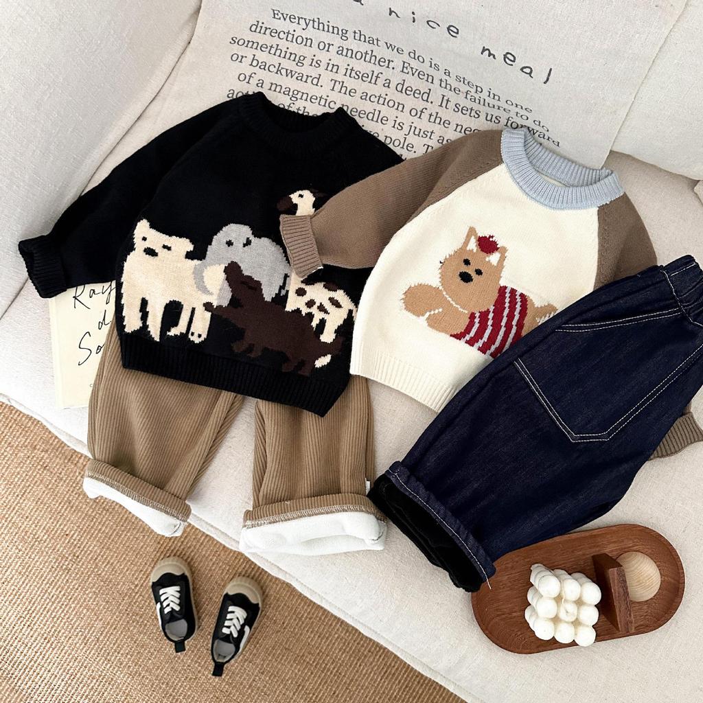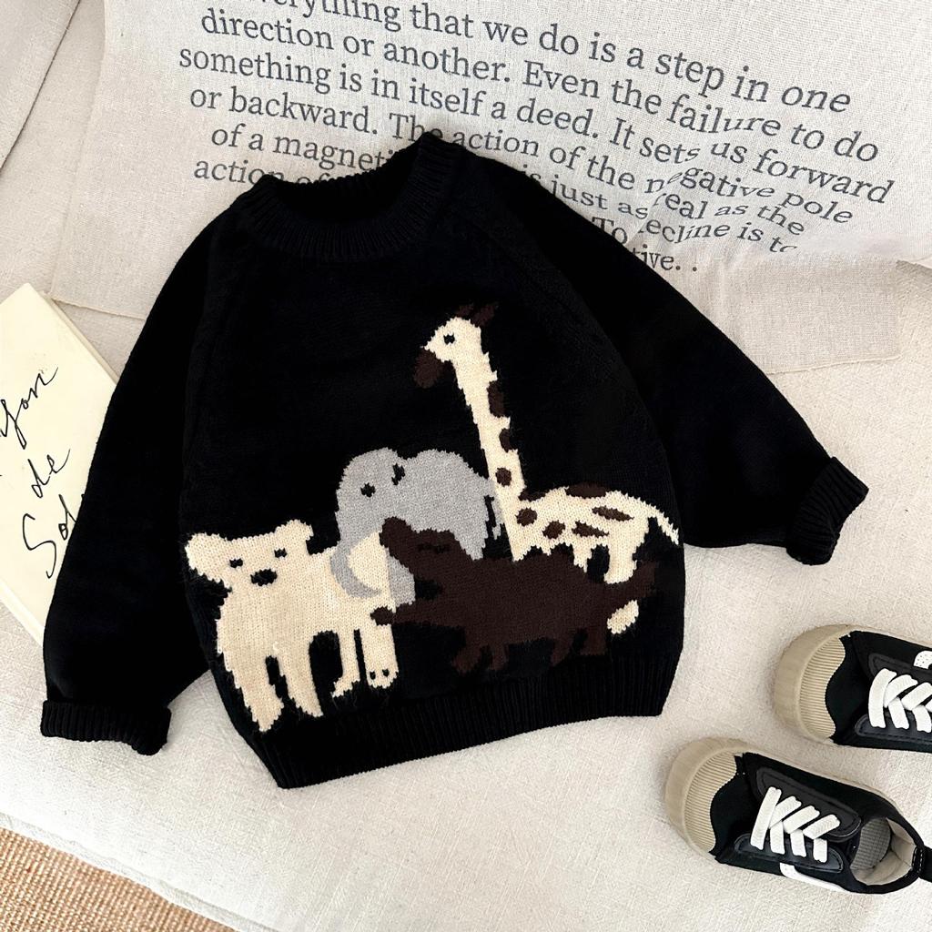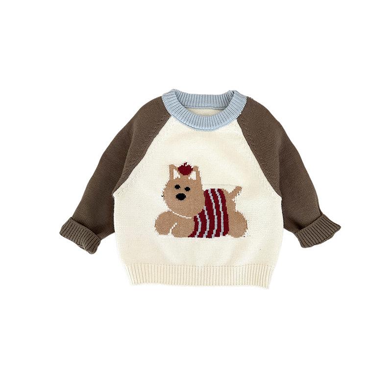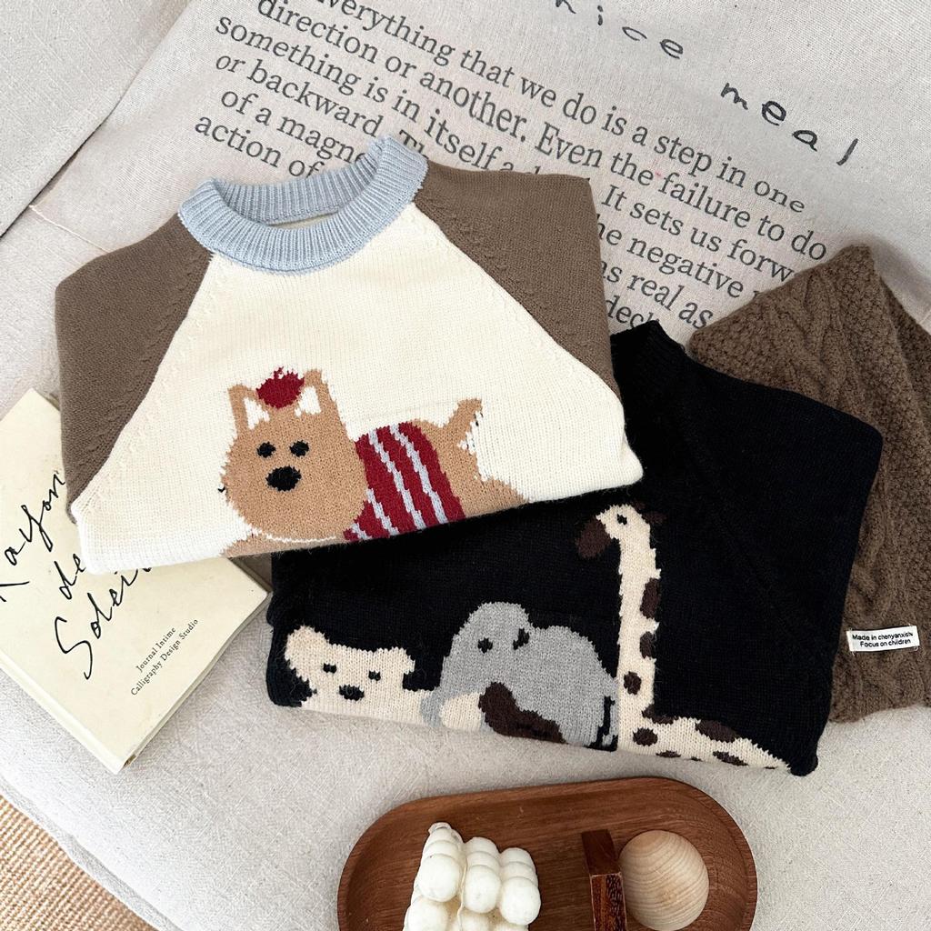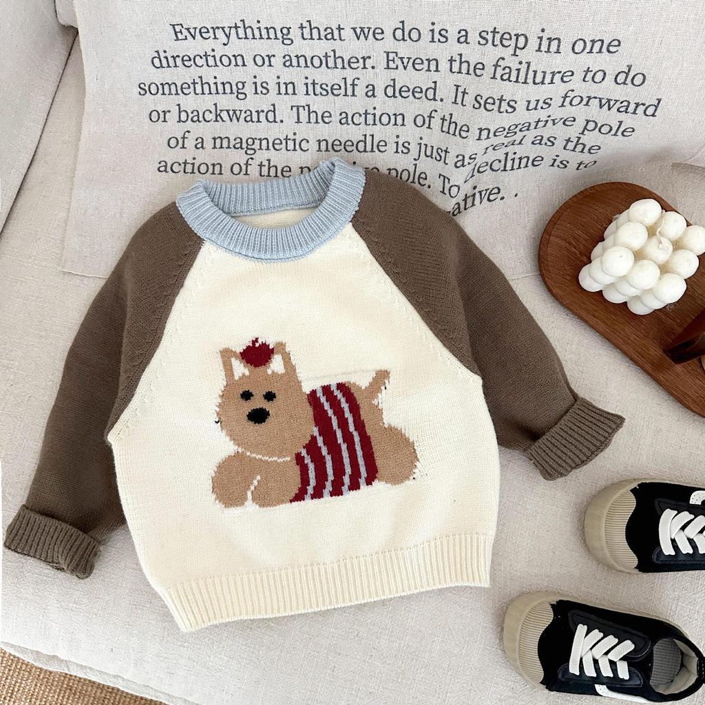 Мультяшный свитер в корейском стиле для младенцев и малышей - Унисекс вязаный топ с круглым вырезом для весны и осени