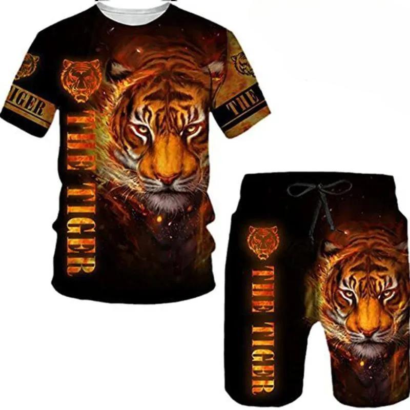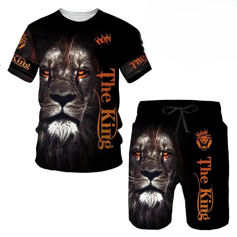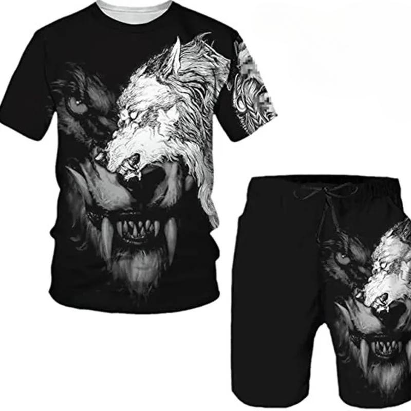 Комплекты из футболки и шорт, костюм-двойка для мужчин, принт с животным узором, с коротким рукавом, спортивный костюм для отдыха, 3D полиэстер, мужской комплект