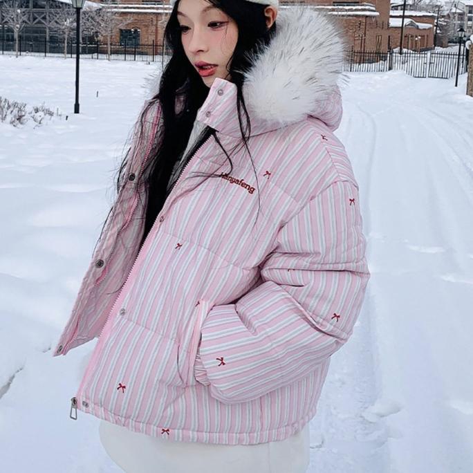 Женская зимняя одежда Y2K Теплое тренчковое пальто с бантом Модное Простое Полосатое Плюшевое Спортивное Ретро Милое Свободное Короткое Пальто — купить товар онлайн с бесплатной доставкой по всему миру!