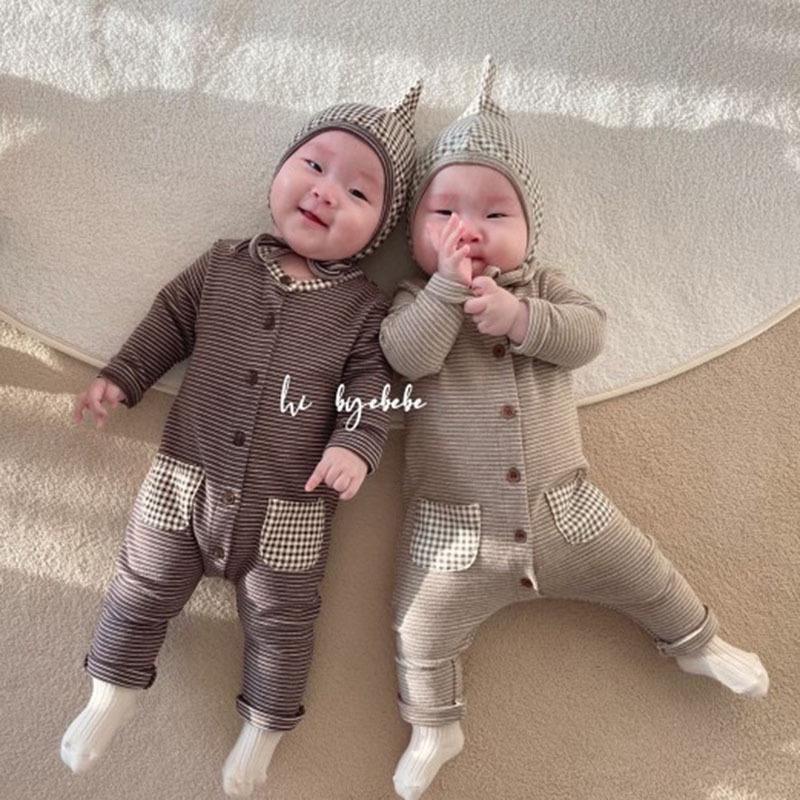 Корейский стиль комбинезон в полоску для новорожденного ребенка пижама