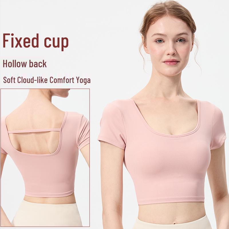 Женский быстросохнущий топ для йоги: Облегающий дизайн с U-образной спиной, Красивая спина, Футболка для фитнеса с коротким рукавом — купить товар онлайн с бесплатной доставкой по всему миру!