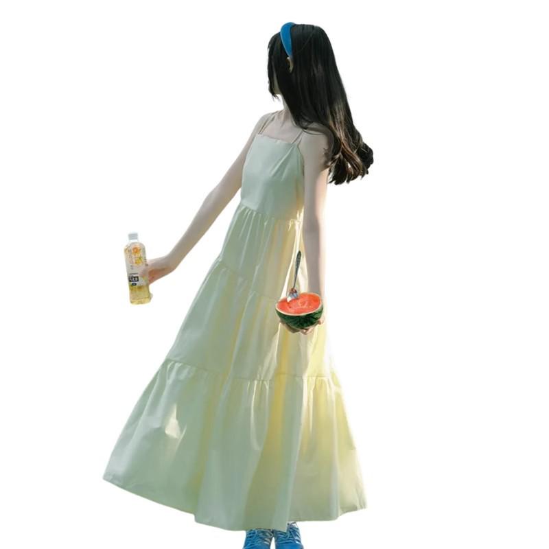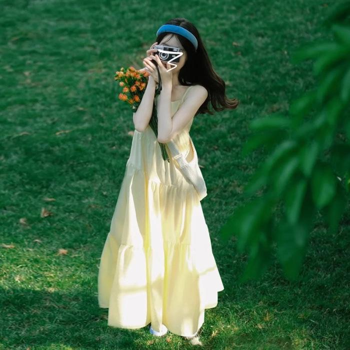 Летнее женское платье макси петит с абрикосовыми бретелями-спагетти для отдыха на море, 2025