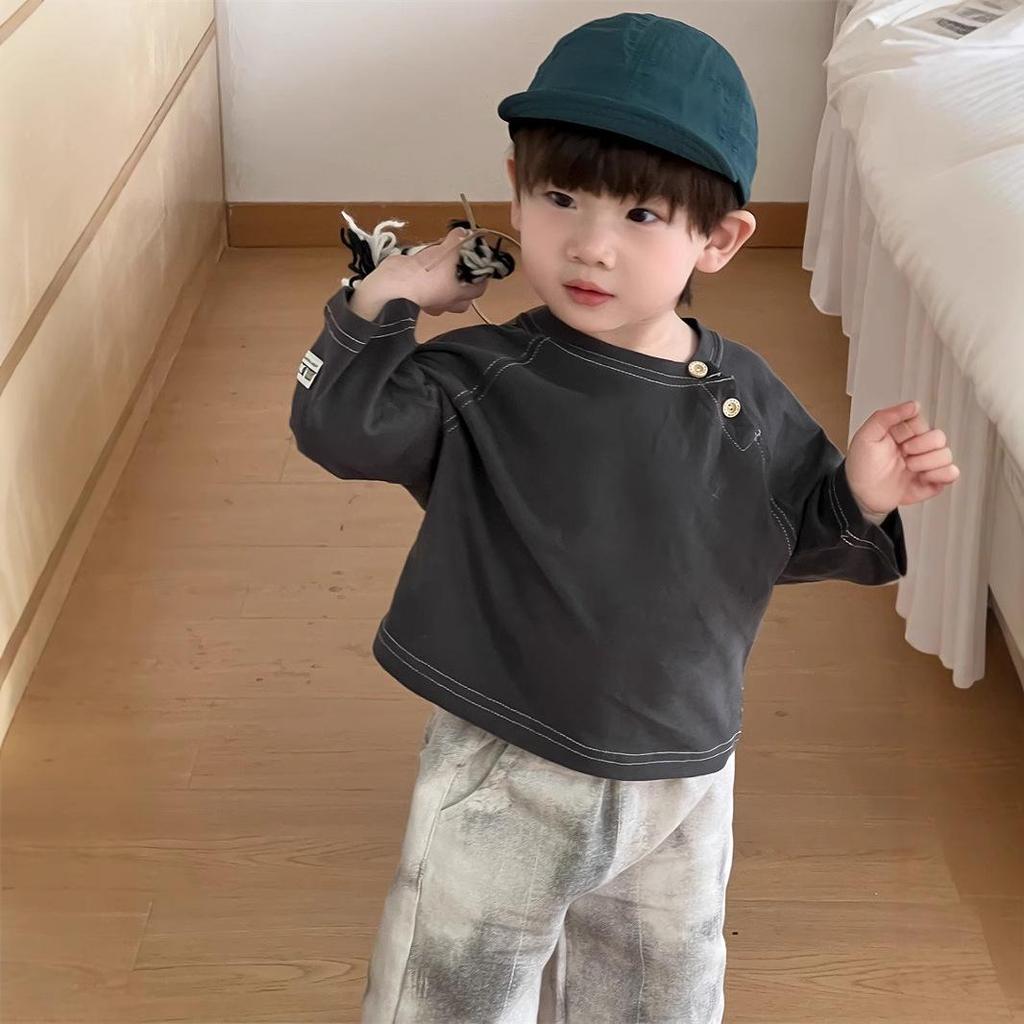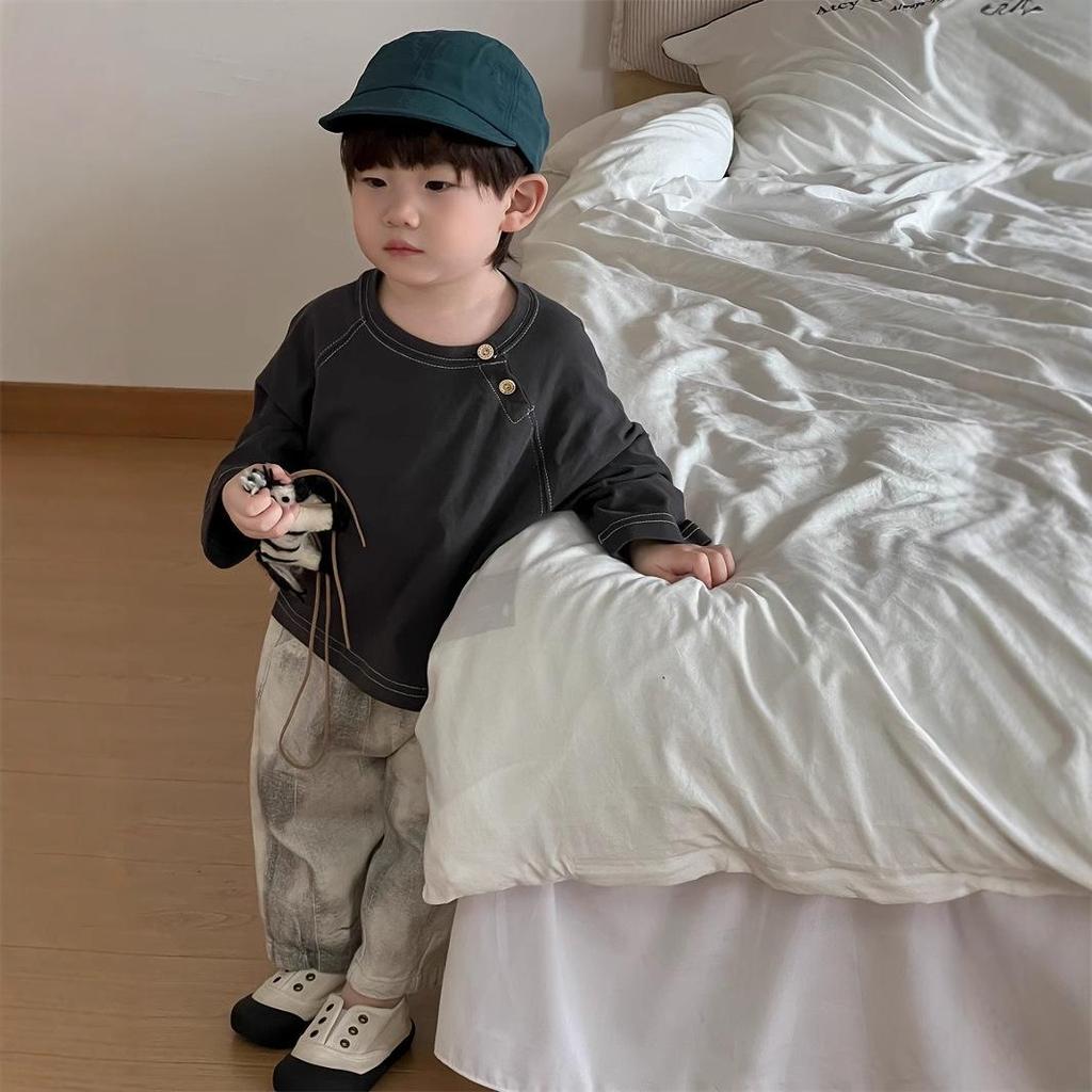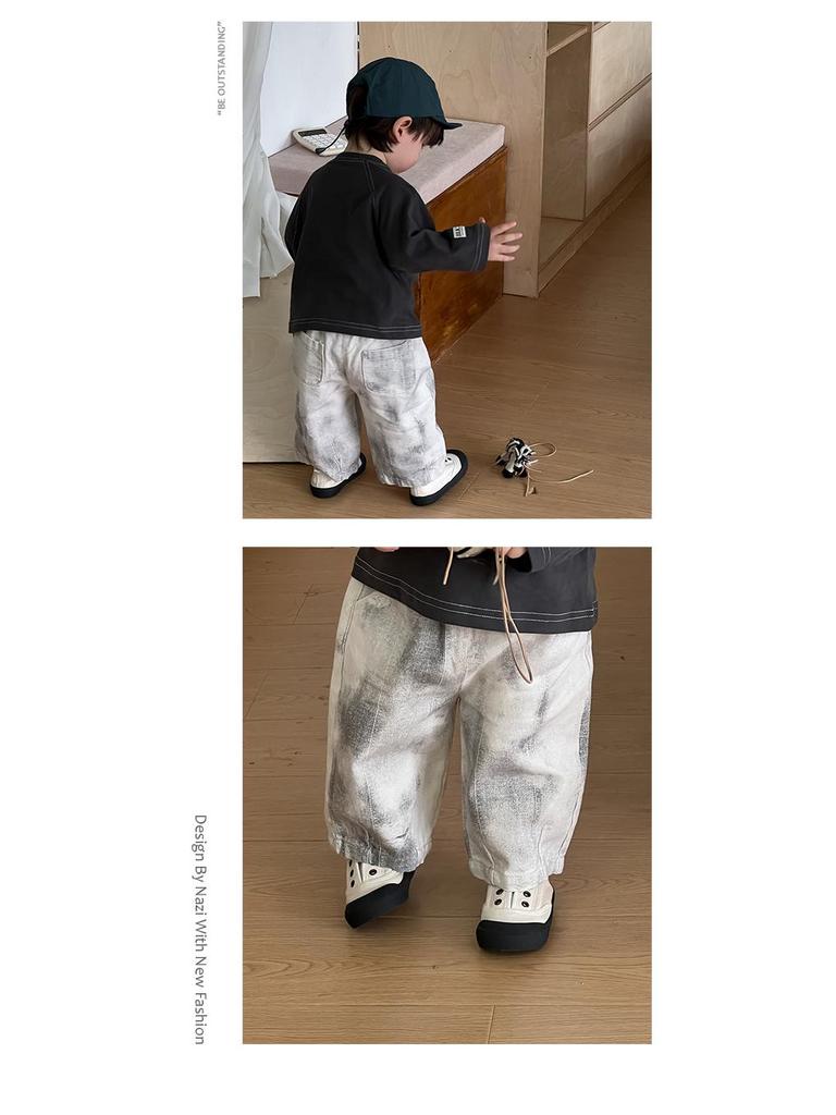 Детский осенний 2025 новый комплект футболки с круглым вырезом и джинсов - одежда для мальчиков в корейском стиле на осень