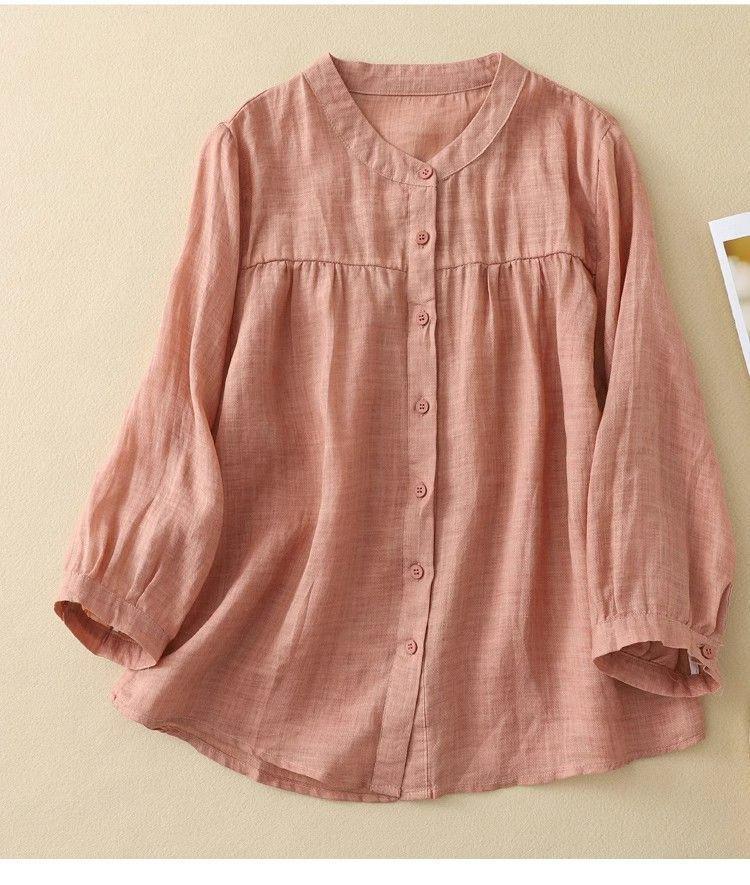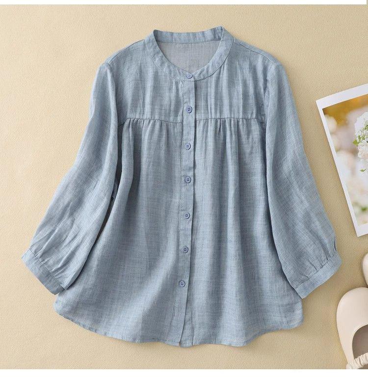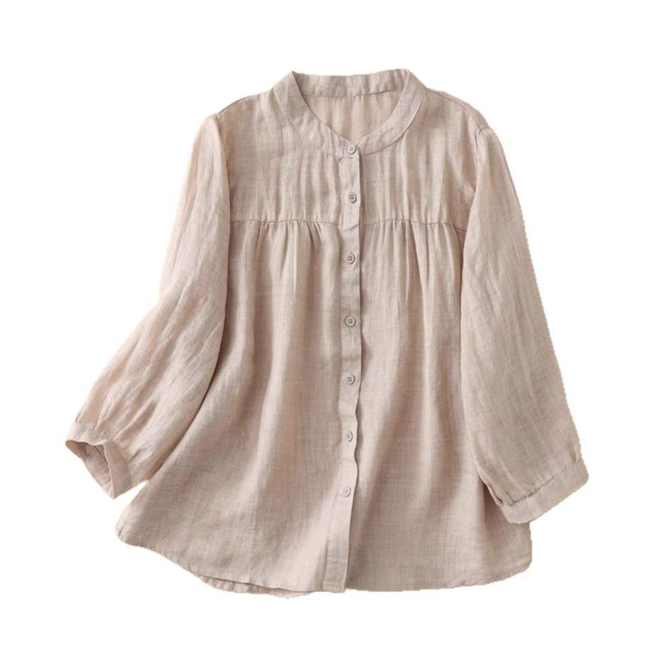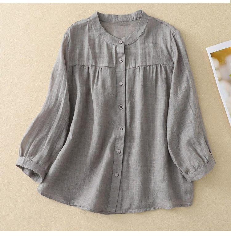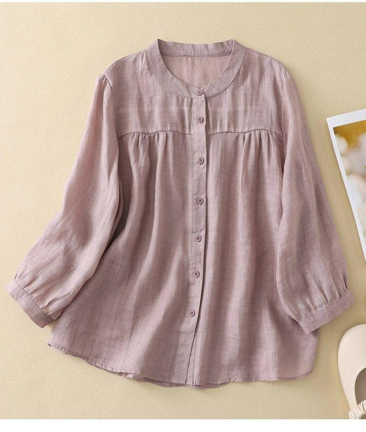 Универсальная женская блузка с рукавом семь восьмых из хлопка и льна для лета