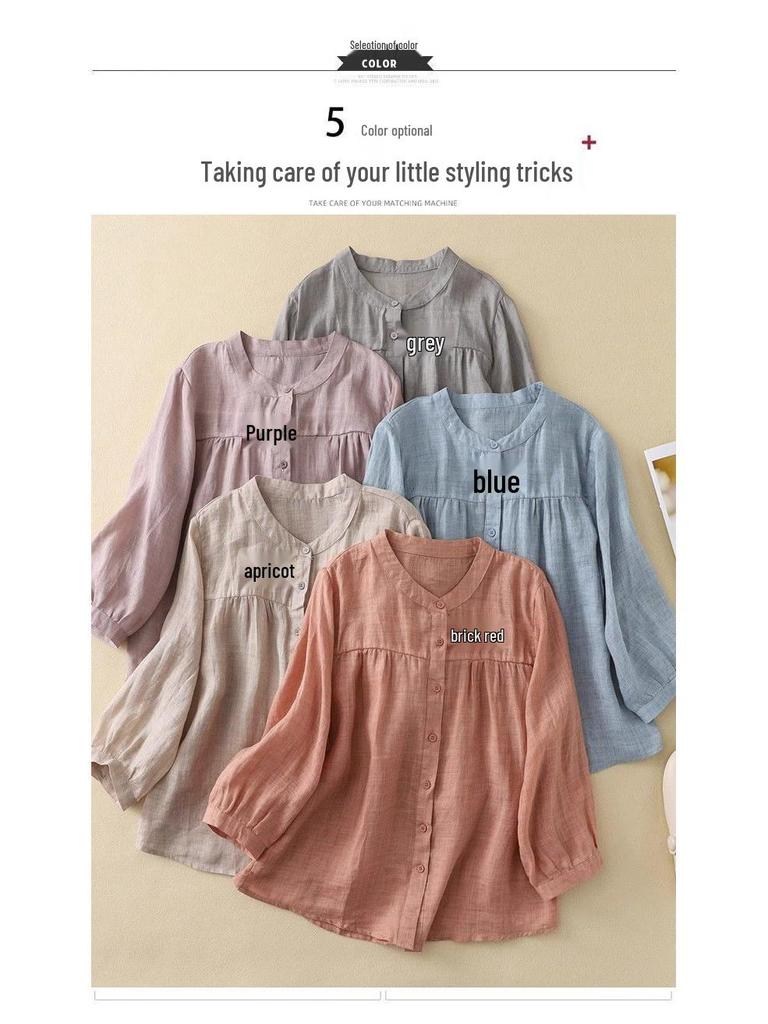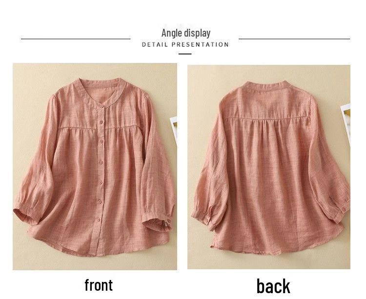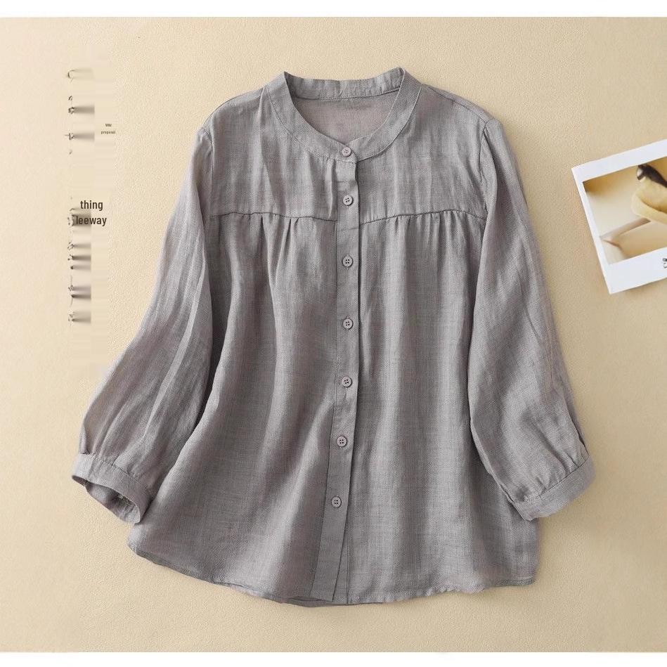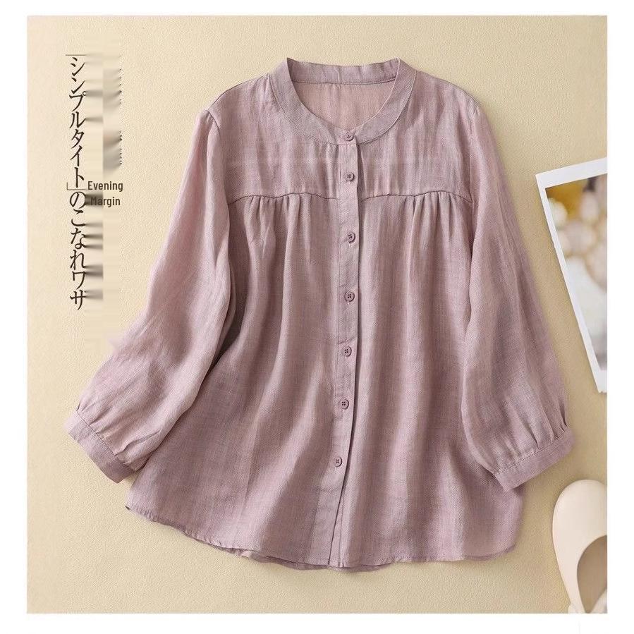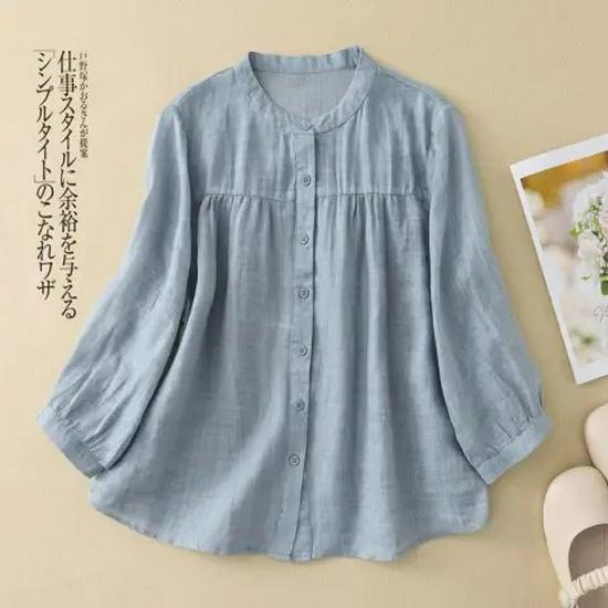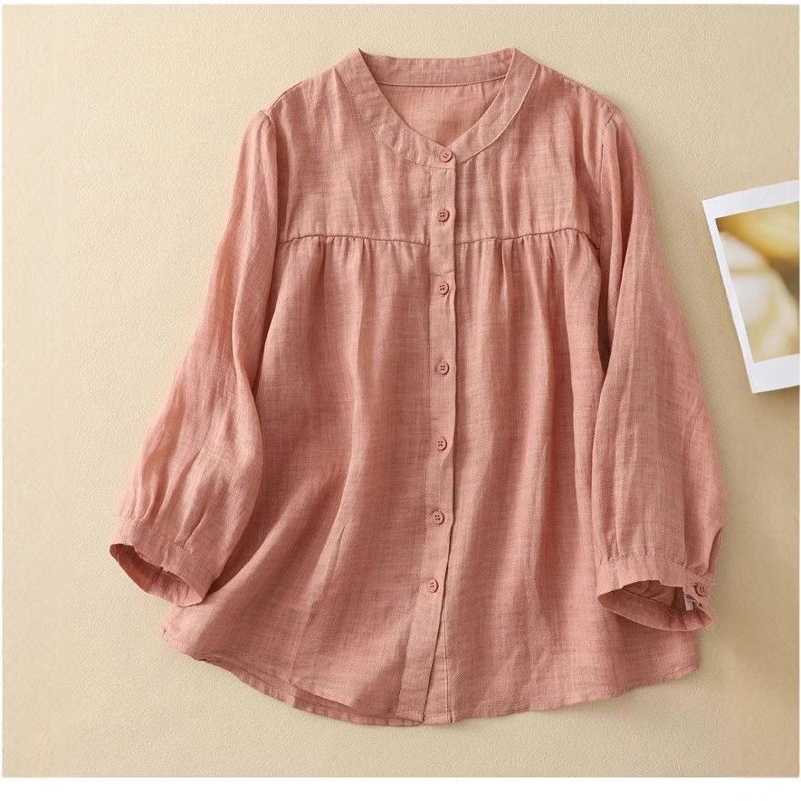 Универсальная женская блузка с рукавом семь восьмых из хлопка и льна для лета