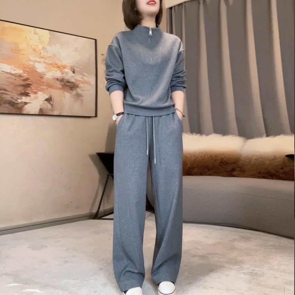 Женский повседневный приталенный комплект толстовки на весну/осень 2025 года с дизайном воротника-стойки