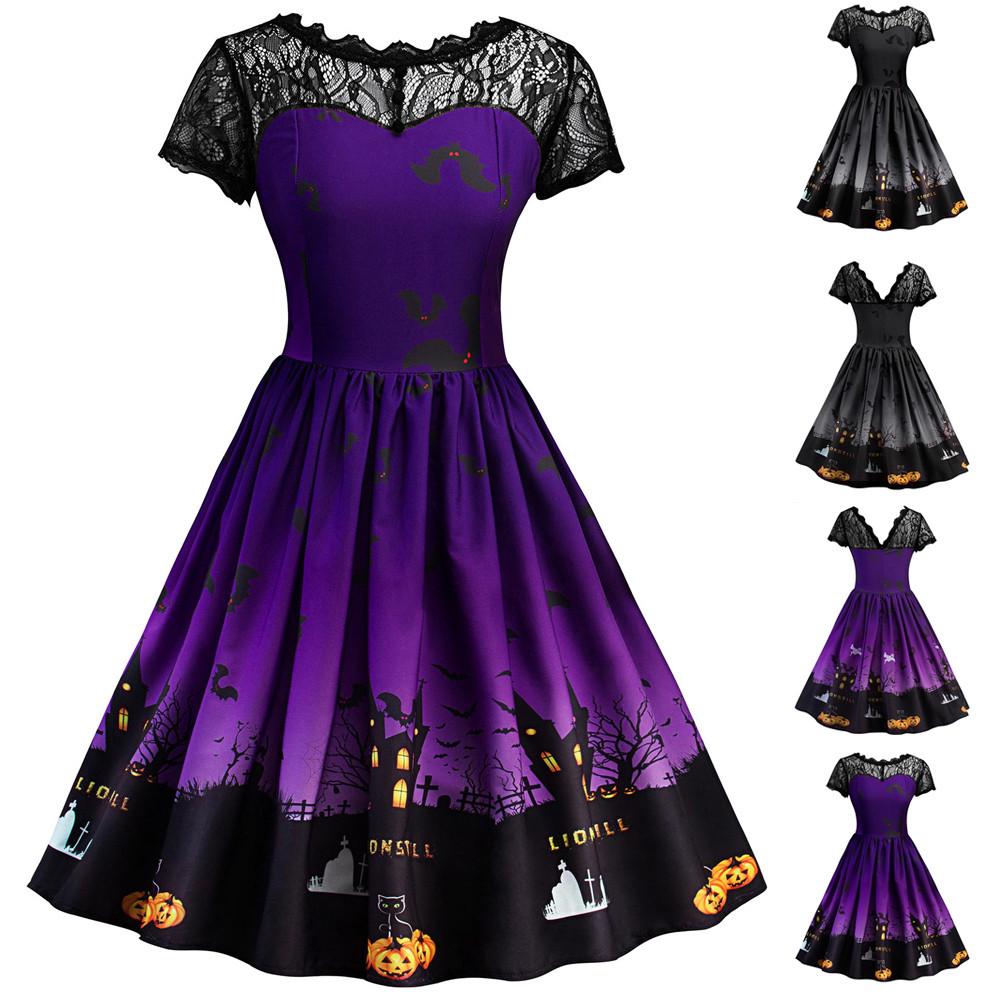 Женское платье с коротким рукавом на Хэллоуин в стиле ретро, кружевное винтажное платье, платье-качели — купить товар онлайн с бесплатной доставкой по всему миру!