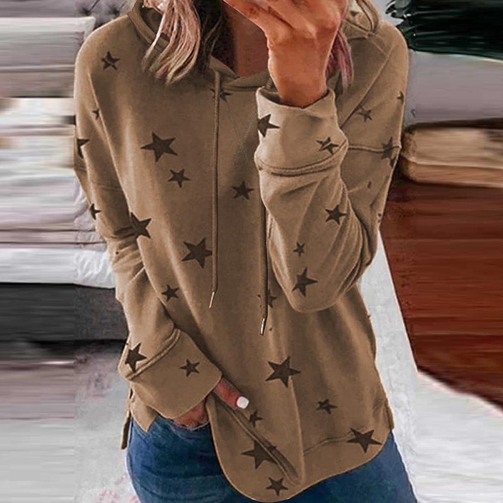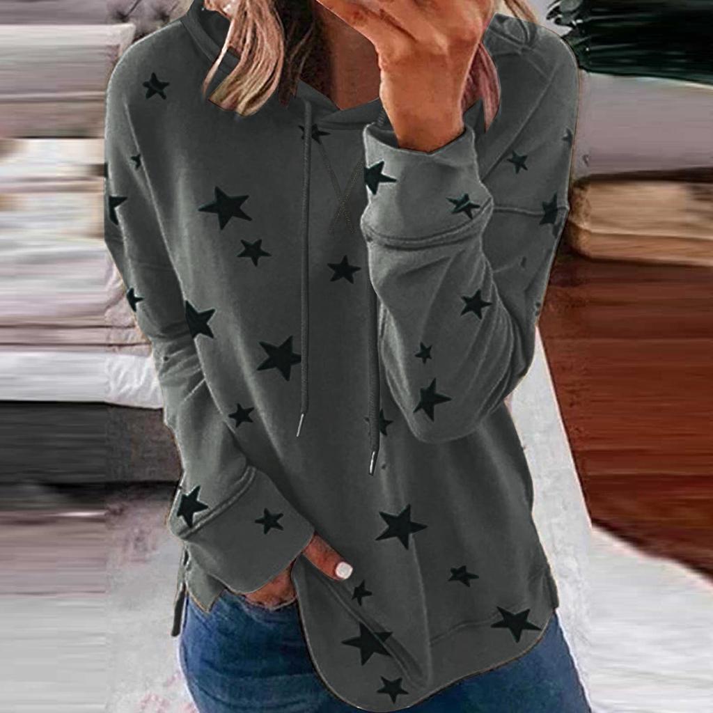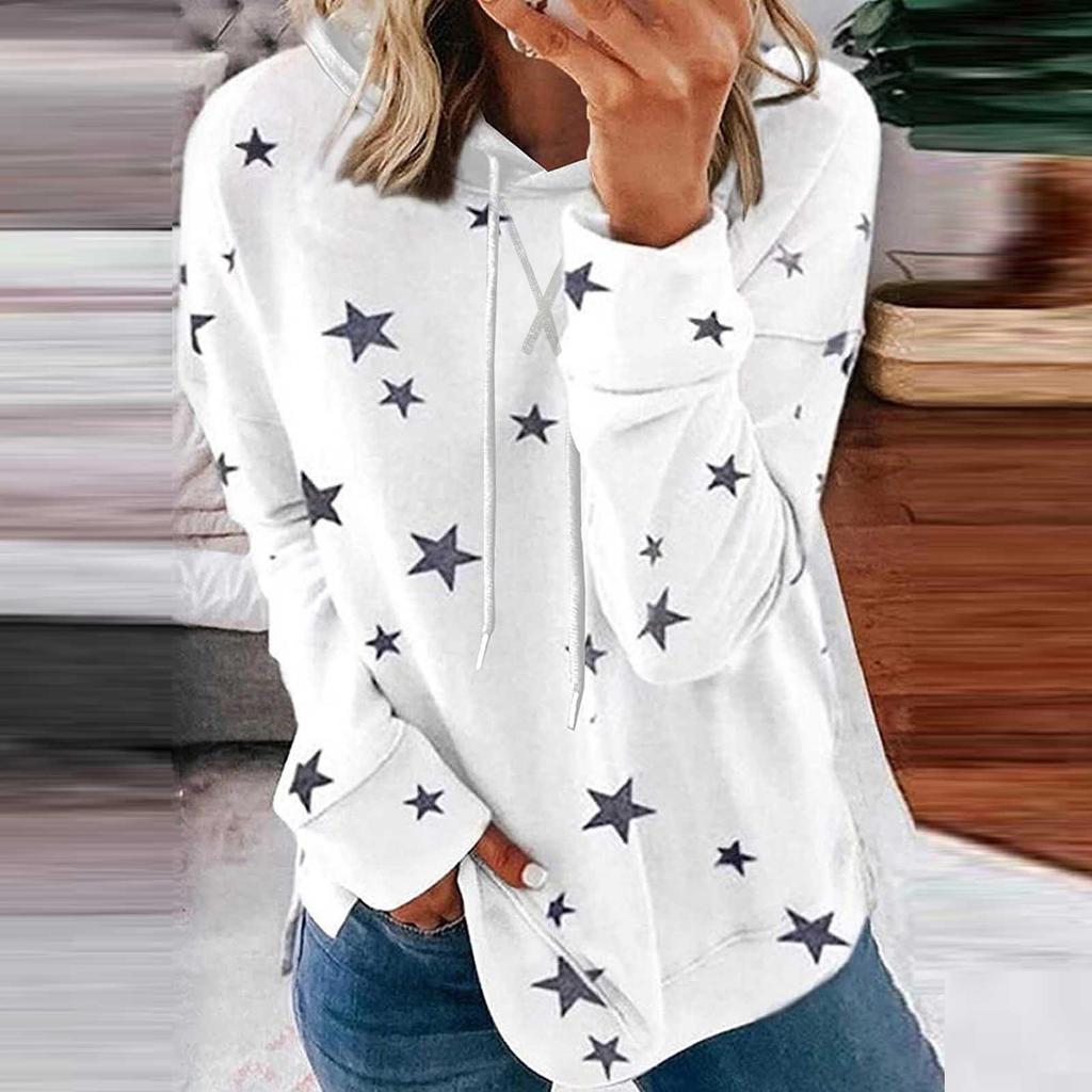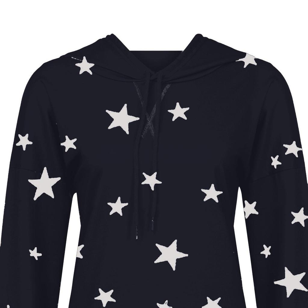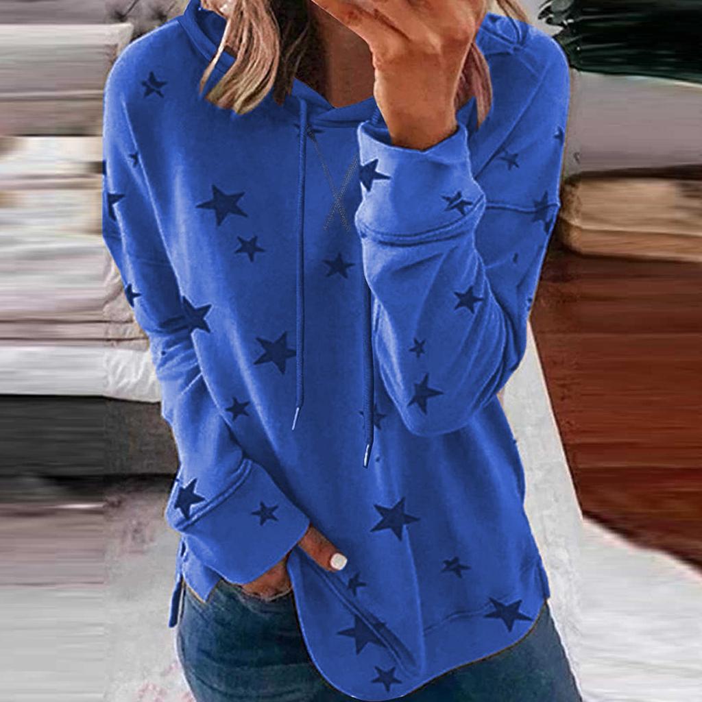 Женская мода с капюшоном и звездным принтом в стиле пэчворк, топы с длинными рукавами, блузка, толстовка