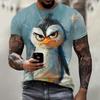 Забавная мужская футболка Модная 3D-принт пингвина Повседневная с круглым вырезом Быстросохнущая с коротким рукавом Топы Летний уличный тренд Хип-хоп Мужская футболка
