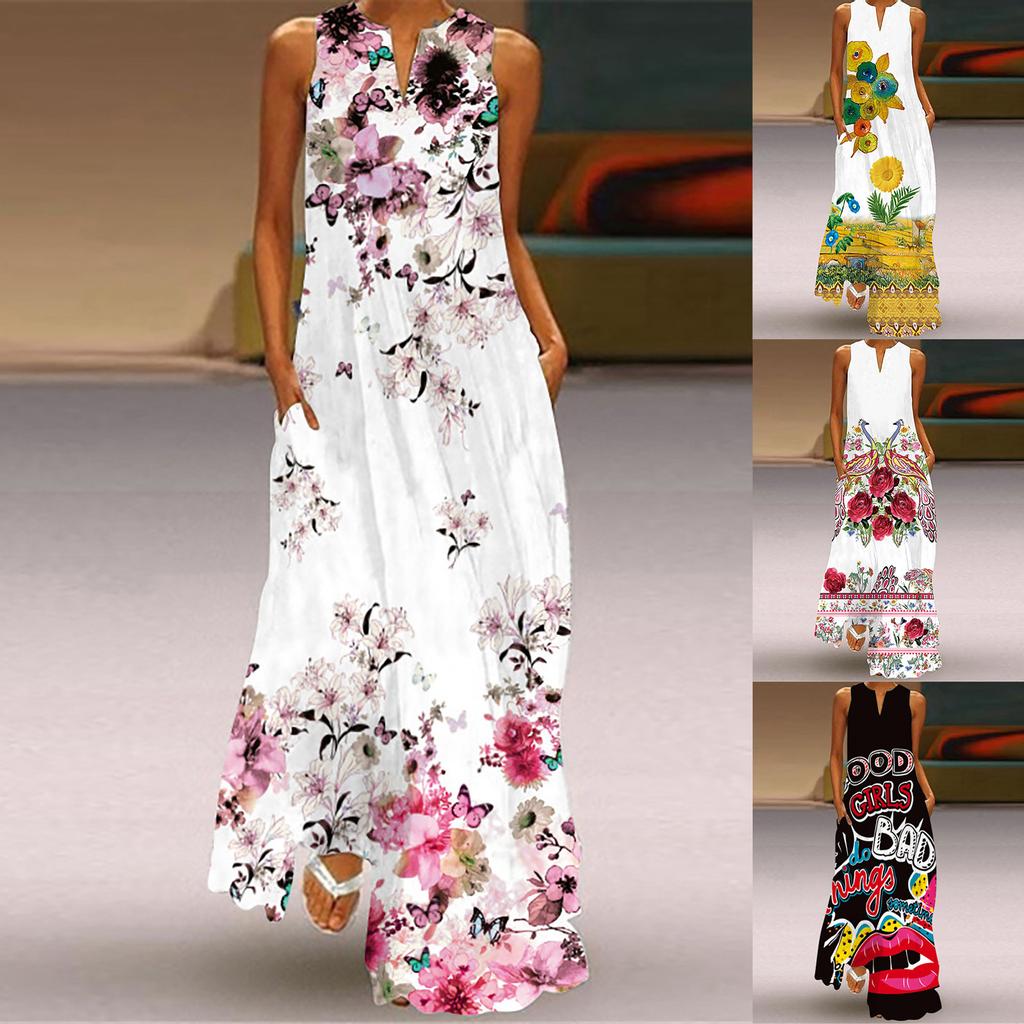 Женское платье без рукавов с v-образным вырезом и принтом, длинное платье-кафтан с разрезом по краю — купить товар онлайн с бесплатной доставкой по всему миру!