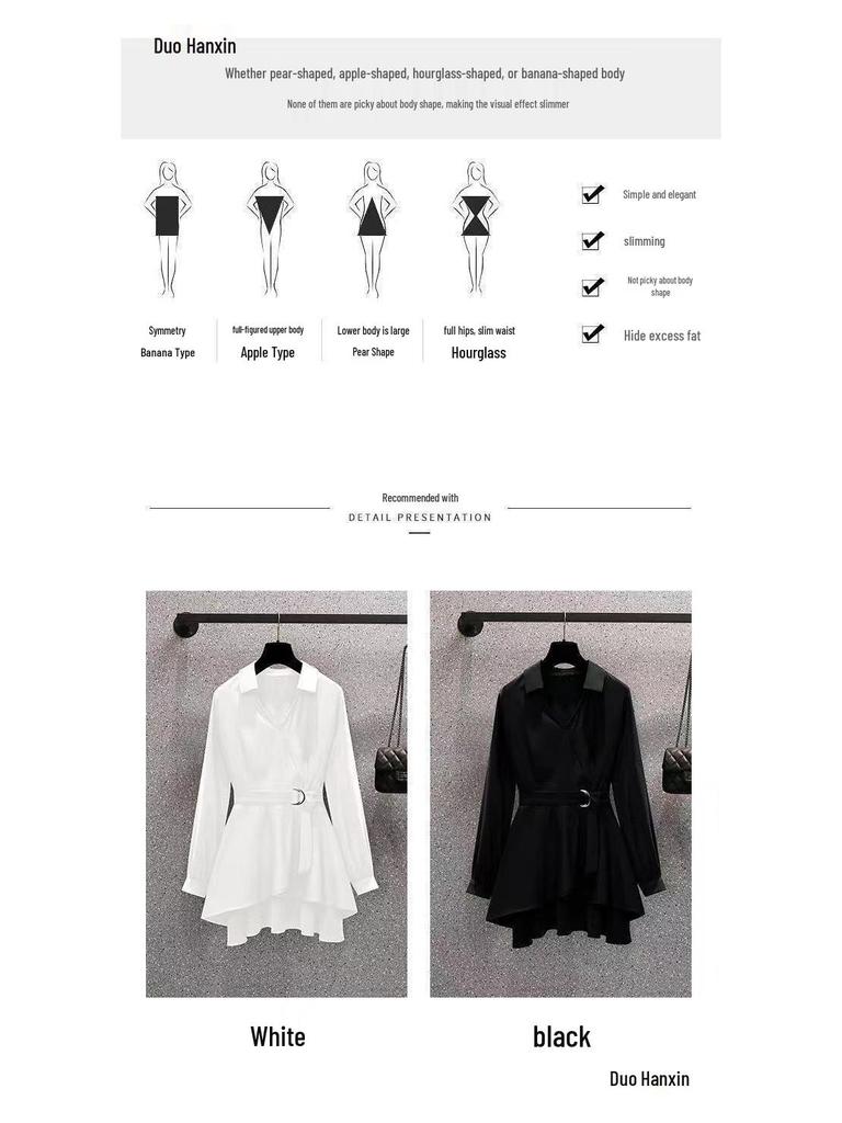 Блузка большого размера 2024 слим-эффект на талии - Весна, Универсальная, Омолаживающая, Модная накидка для женщин