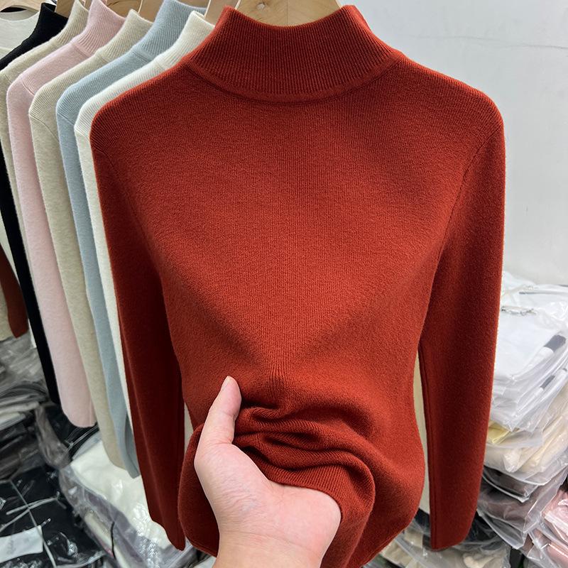 Шикарный красный ангоровый вязаный свитер: Женский облегающий топ с полувысоким воротом для осени/зимы