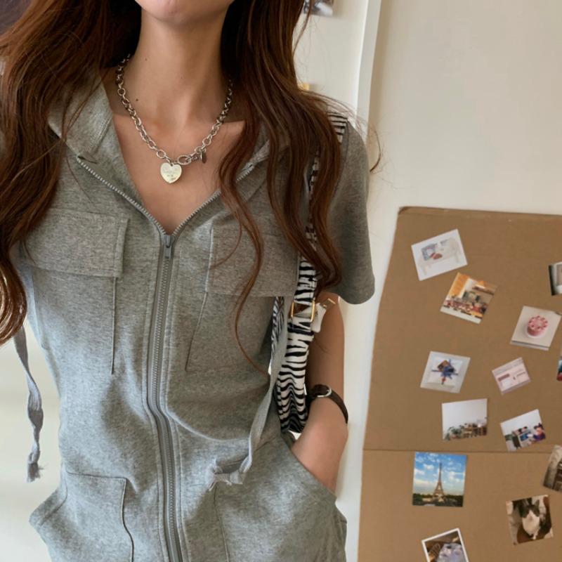 Почувствуйте идеальное сочетание комфорта и стиля с этим летним платьем в корейском стиле.. Разработанный с капюшоном и короткими рукавами, он идеально подходит для повседневных прогулок.. Платье имеет уникальную деталь в виде молнии для удобства надевания, а его свободный крой обеспечивает расслабленный силуэт.. Изготовленное из высококачественного хлопка, с инновационной отделкой хлопчатобумажной тканью «рыбья чешуя», это изделие обеспечивает воздухопроницаемость и мягкость на ощупь, что делает его незаменимым для вашего летнего гардероба.