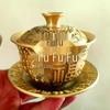 Антикварный набор чайных чашек из латуни: Мотив Дракона и Феникса с бронзовыми украшениями, коллекция из 3 предметов