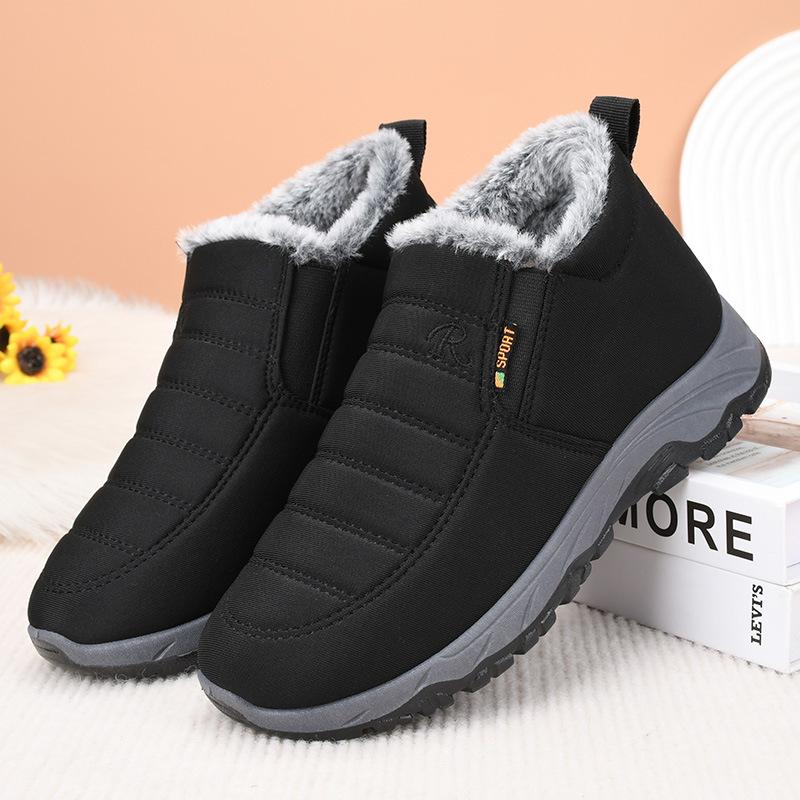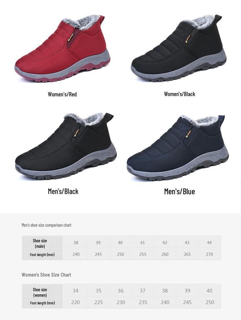 Эти женские плюшевые теплые водонепроницаемые походные ботинки разработаны специально для женщин среднего и пожилого возраста, которые любят приключения на открытом воздухе.. Обувь изготовлена из прочного текстильного верха, обеспечивающего удобную посадку и сохраняющего ваши ноги сухими и защищенными от непогоды.. Эти туфли с прочной ПВХ-подошвой обеспечивают отличное нескользящее сцепление, гарантируя устойчивость на различных поверхностях.. Внутренняя часть подкладки выполнена из мягкого искусственного плюша, чтобы обеспечить дополнительный слой тепла и комфорта.. Конструкция, которую легко надевать, делает их удобными для всех, кто ищет в обуви как функциональность, так и стиль.. Идеально подходящие для пеших походов, прогулок и исследования природы, эти ботинки обещают улучшить ваш опыт на открытом воздухе благодаря своему практичному и продуманному дизайну.