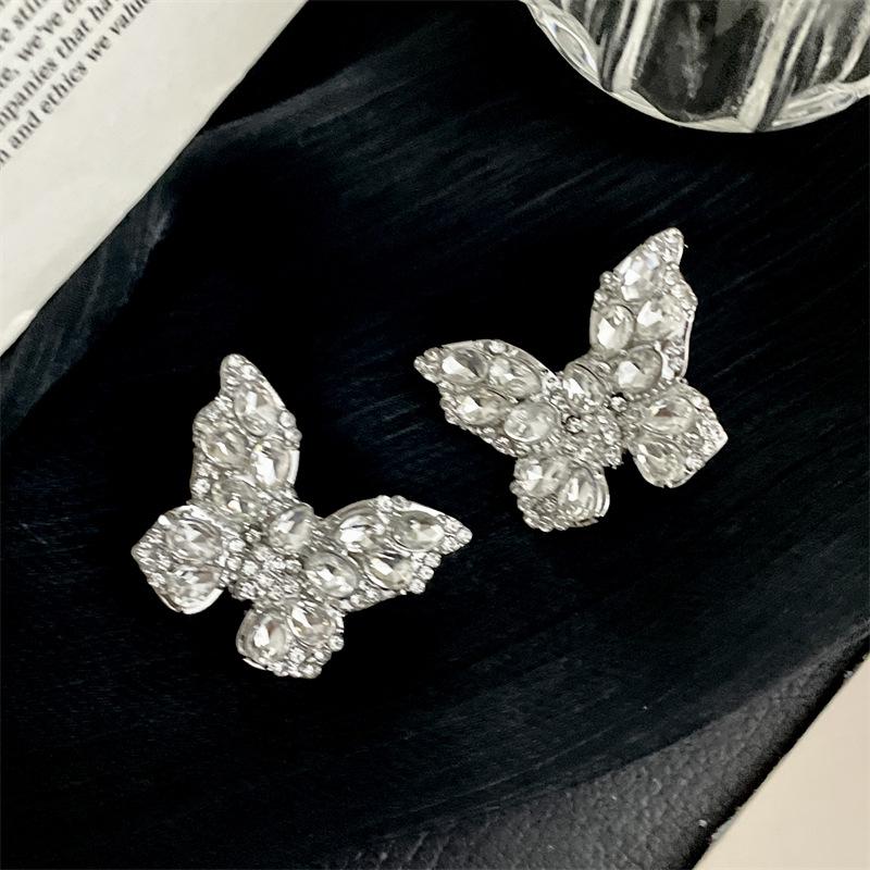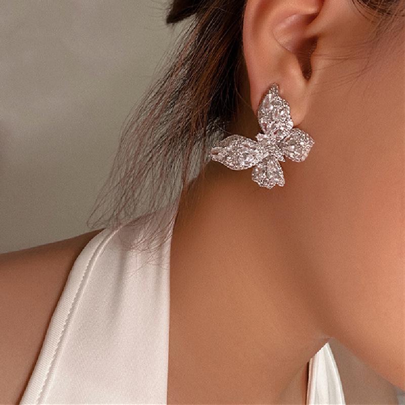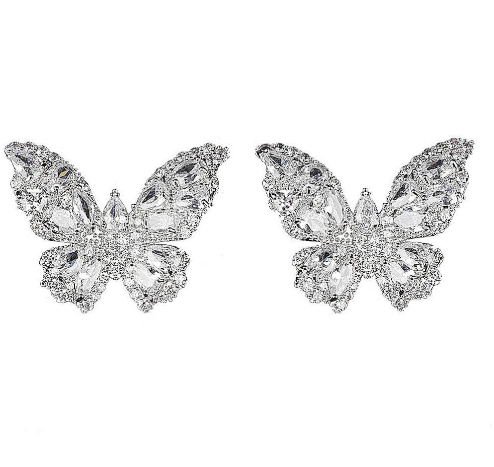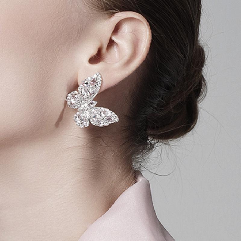 Роскошные серьги-пусеты с кристаллами бриллиантовой огранки в виде бабочек - Серебро S925 для женщин, невест и банкетов