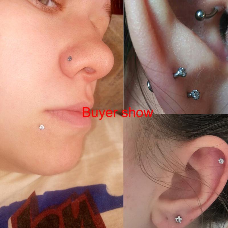 Титановый пирсинг губы G23 с бриллиантом, внутренняя резьба, 16G, 3-5 мм