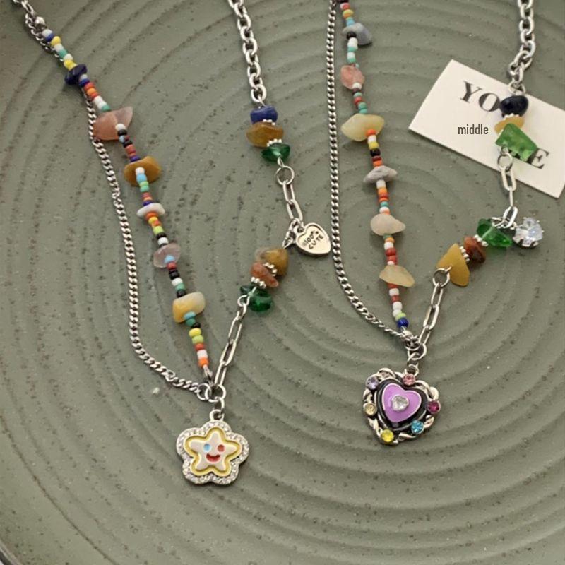 Ожерелье-чокер с семицветным камнем и смайликом - Женский чокер в стиле Y2K класса люкс