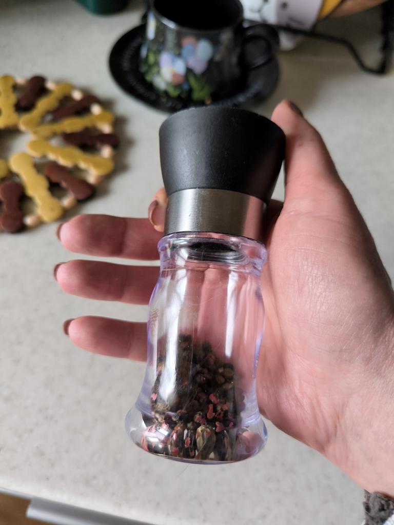Мельница для специй ❤️ Мельница просто отличная! Очень удобно лежит в руке - корпус не скользит, крышка плотно закрывается. Помол получается равномерный. Проверяла на перце - справляется быстро и без усилий. Отдельно нравится, что контейнер прозрачный: видно, сколько специй осталось, и сам вид смеси красиво смотрится на кухне. Механизм крутится плавно, ничего не заедает. Компактная, стильная и практичная - идеально и для ежедневного использования, и для сервировки стола. Я довольна👍 Удачных покупок ❤️ Ваша Вика 😊