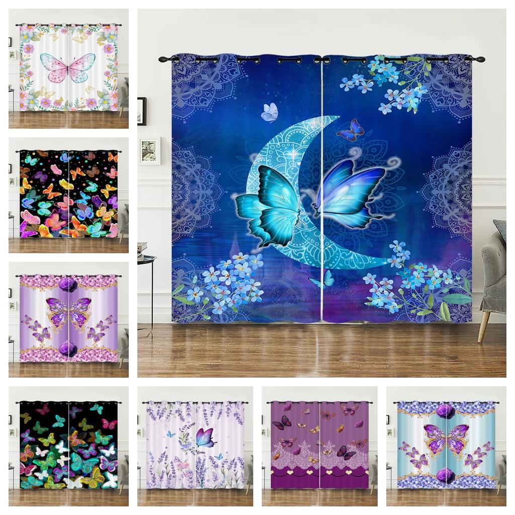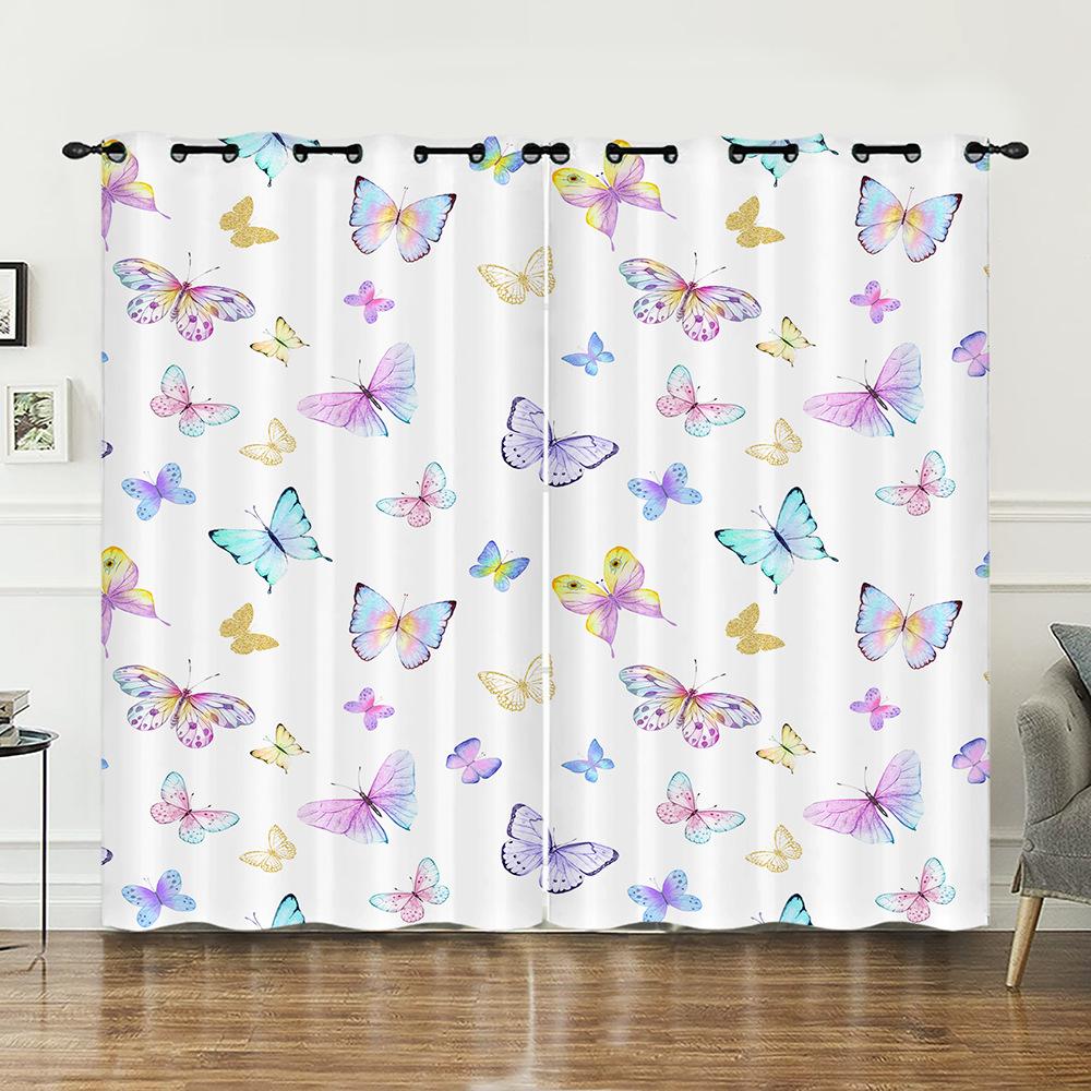 Шторы с бабочками, 3D-солнцезащитный козырек, цифровая печать, шторы для спальни, светонепроницаемые, без необходимости сверления отверстий.