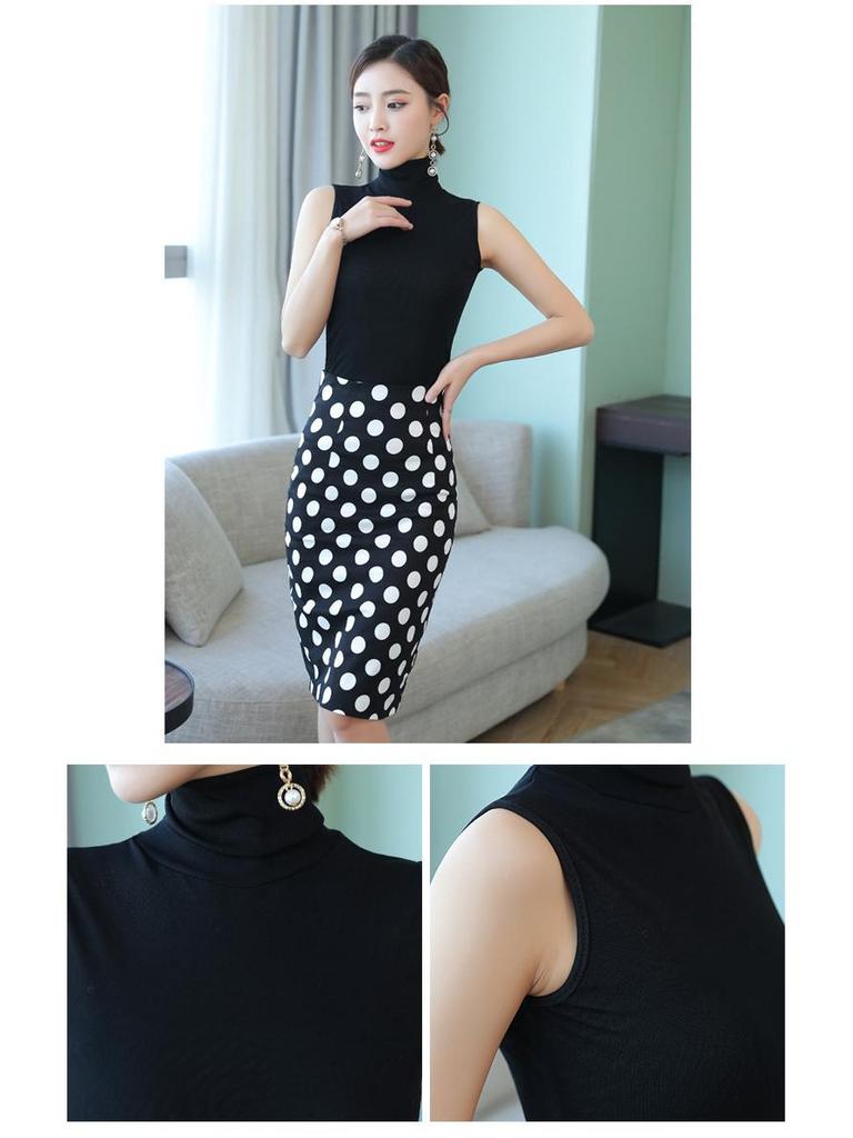 2021 Женский черный топ без рукавов на тонких бретелях с высоким воротом