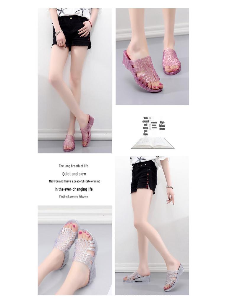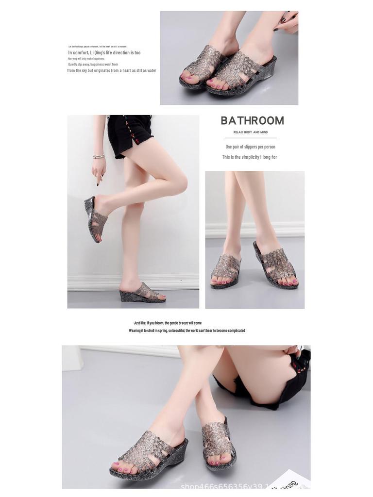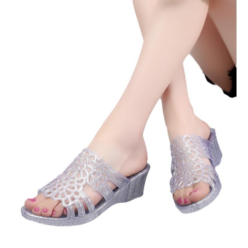 Женские прозрачные шлепанцы на толстой подошве и высоком хрустальном каблуке