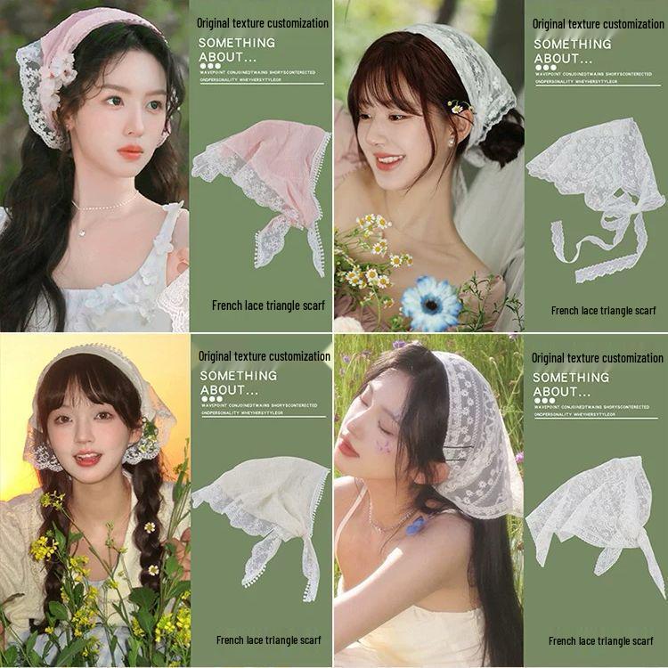 Женский треугольный шарф из французского кружева: Легкий, Дышащий и Универсальный Головной Платок и Лента для Волос — купить товар онлайн с бесплатной доставкой по всему миру!