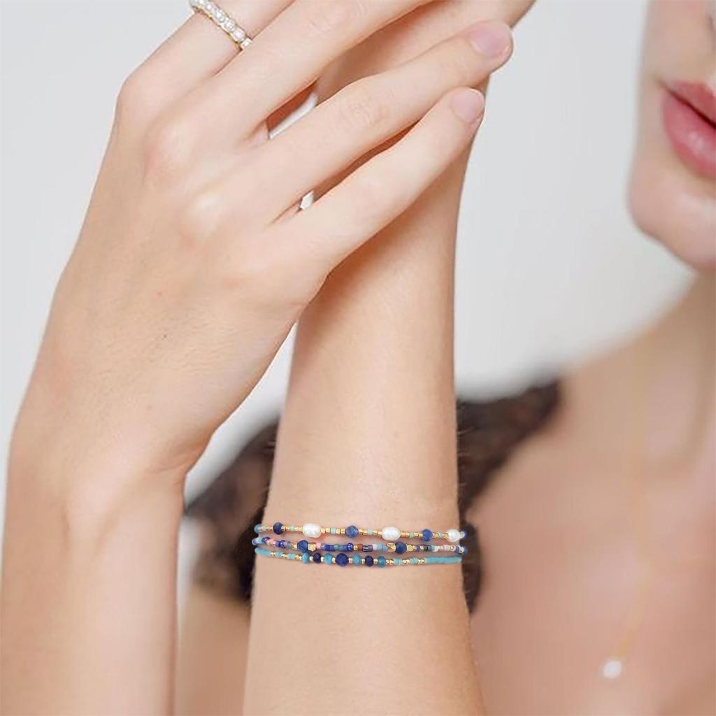 Браслет из лазурита и жемчуга с бисером Miyuki