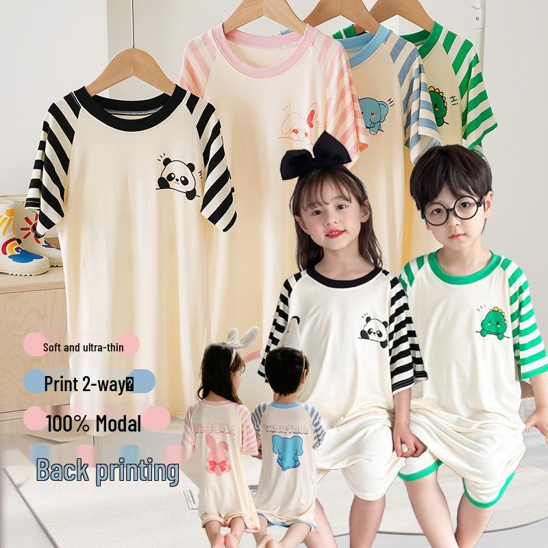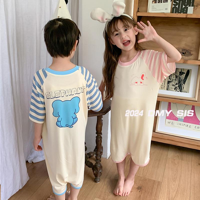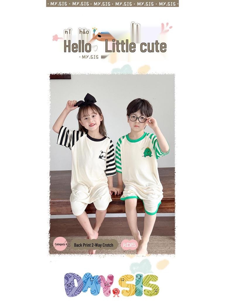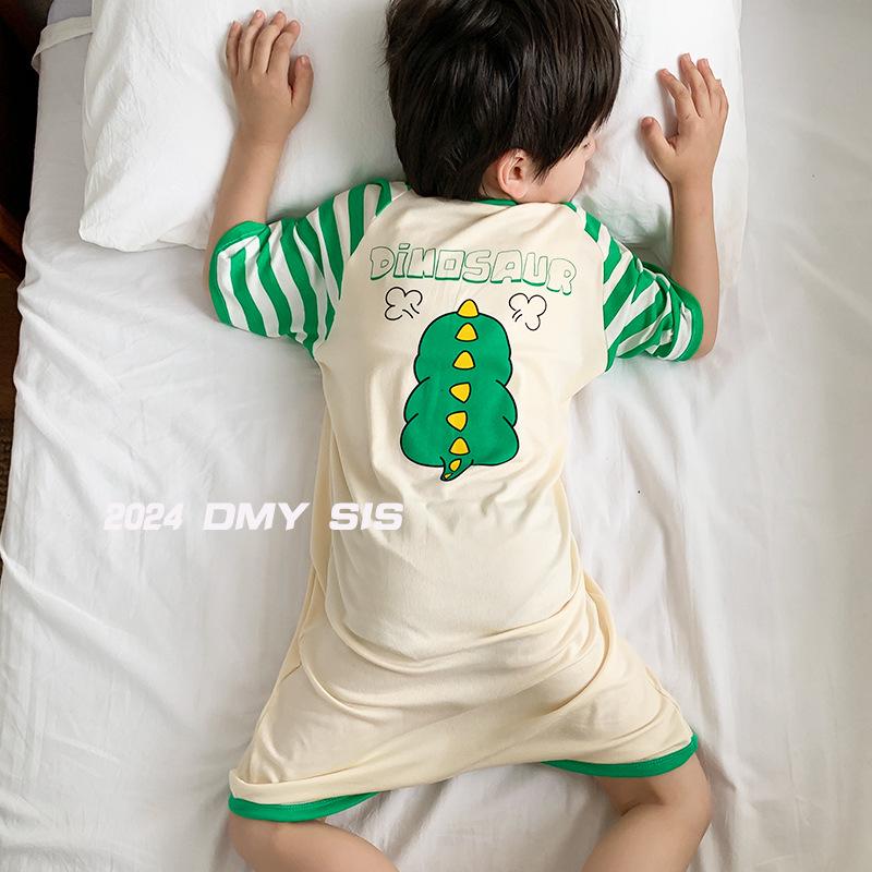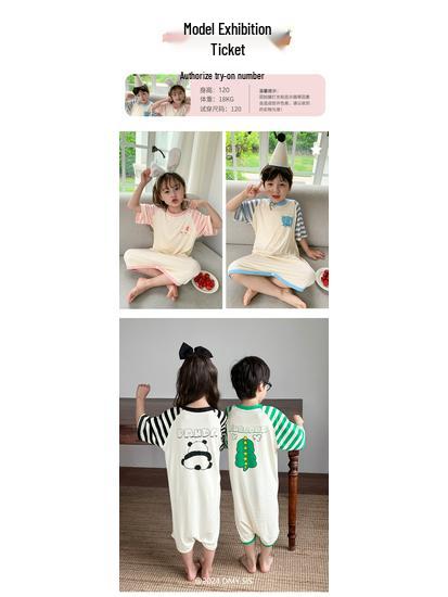 MYSIS Летний детский модальный комбинезон-спальный мешок с короткими рукавами и разрезами на штанинах, 2-сторонний, в виде юбки, пижама с детской маской