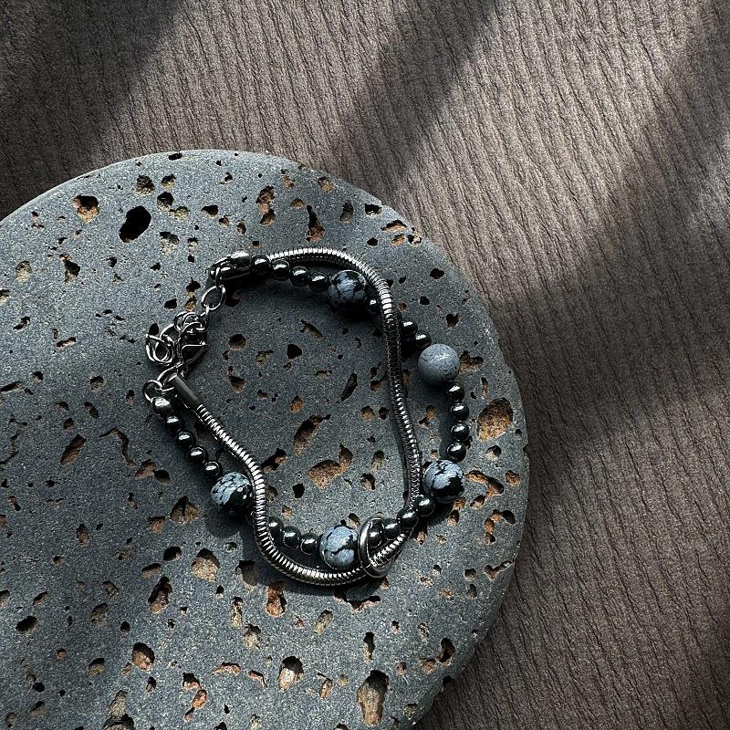 Мужской браслет Gaga из двойной змеевидной цепочки с бусинами из камня «снежинка»