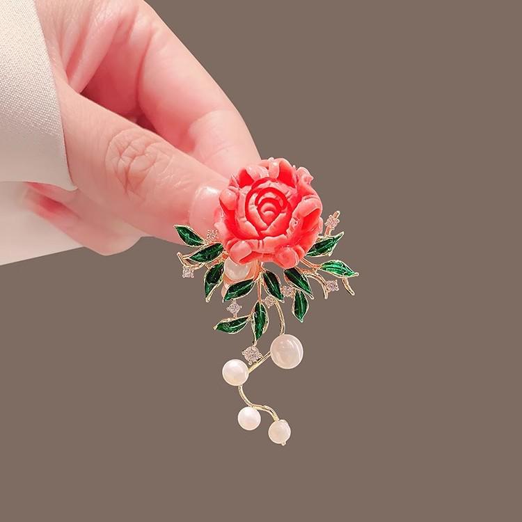 Элегантная ретро брошь в виде цветка с жемчугом: Роскошная брошь-пион для высококлассного женского наряда