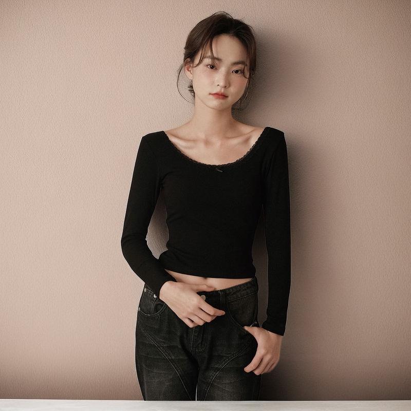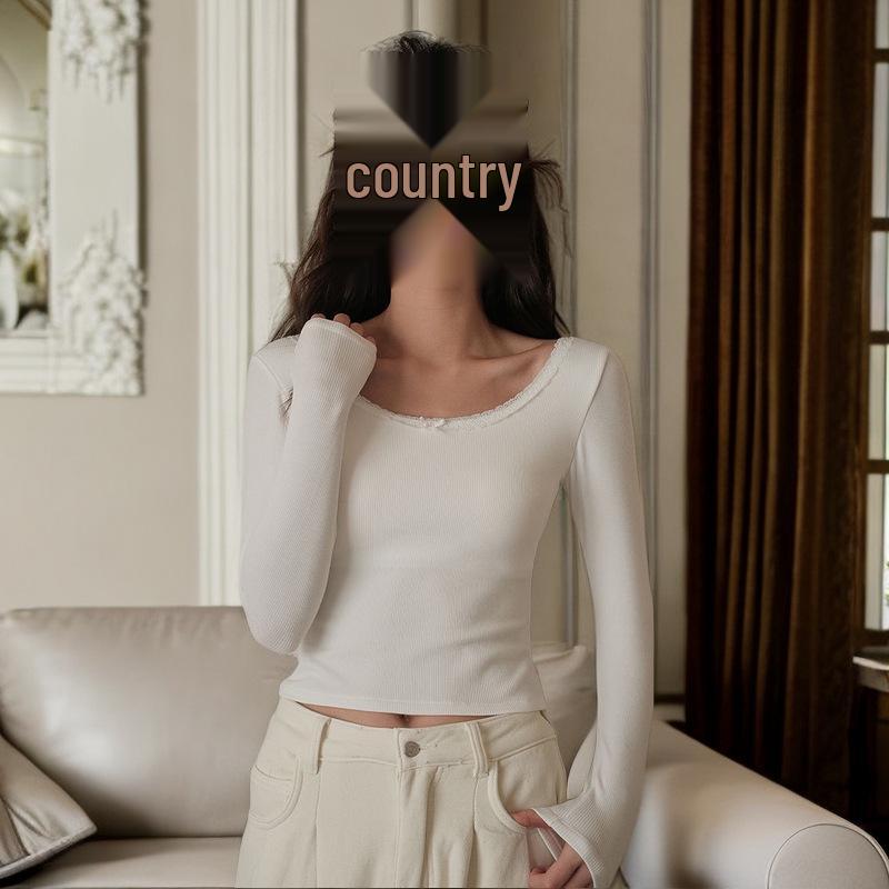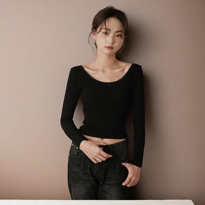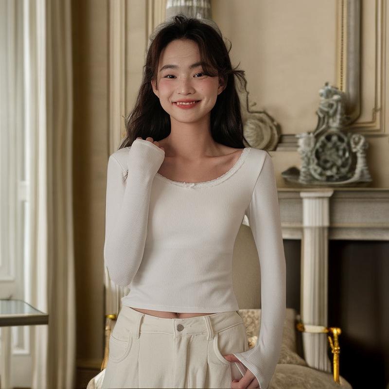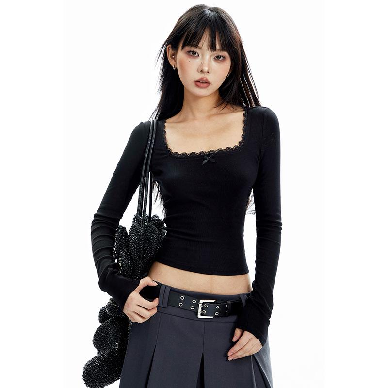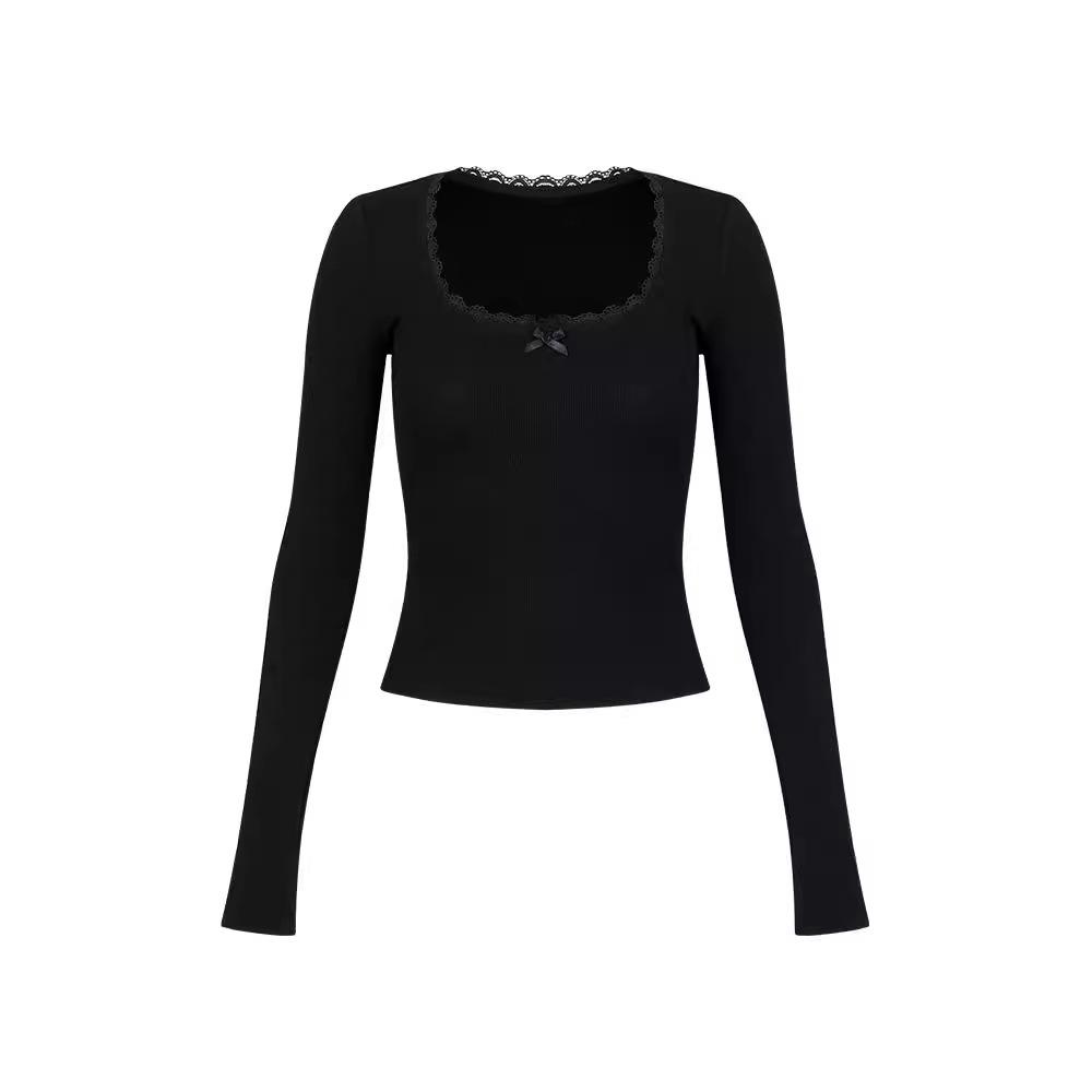 Женский топ с квадратным вырезом, длинными рукавами и кружевной отделкой, облегающего кроя, для осени/зимы