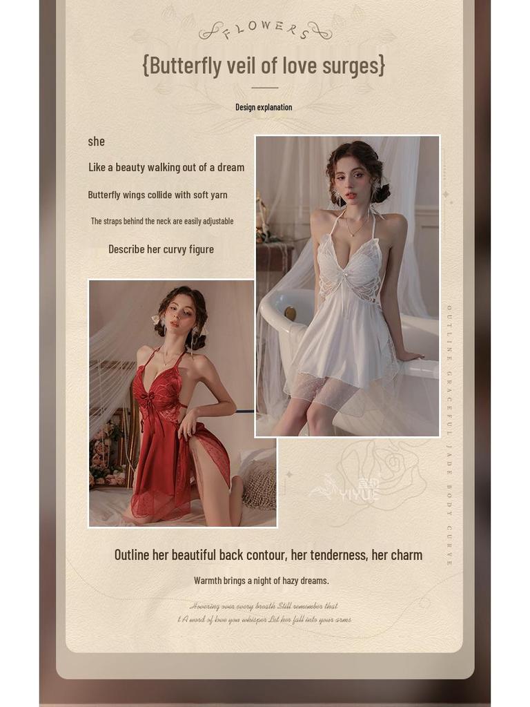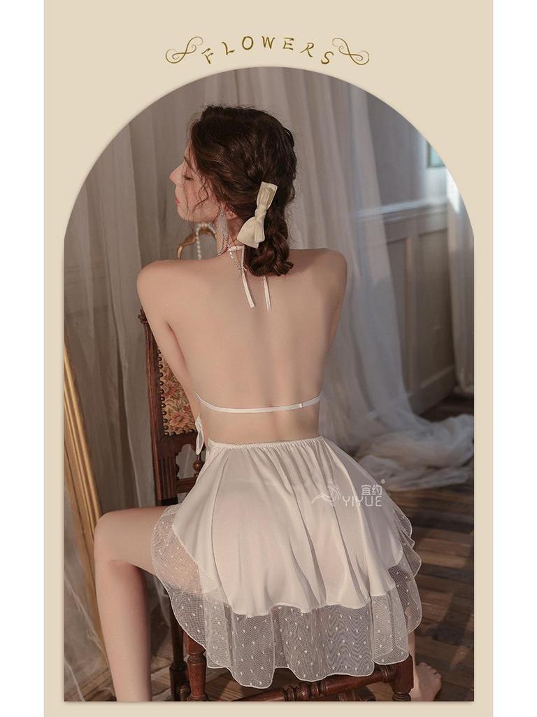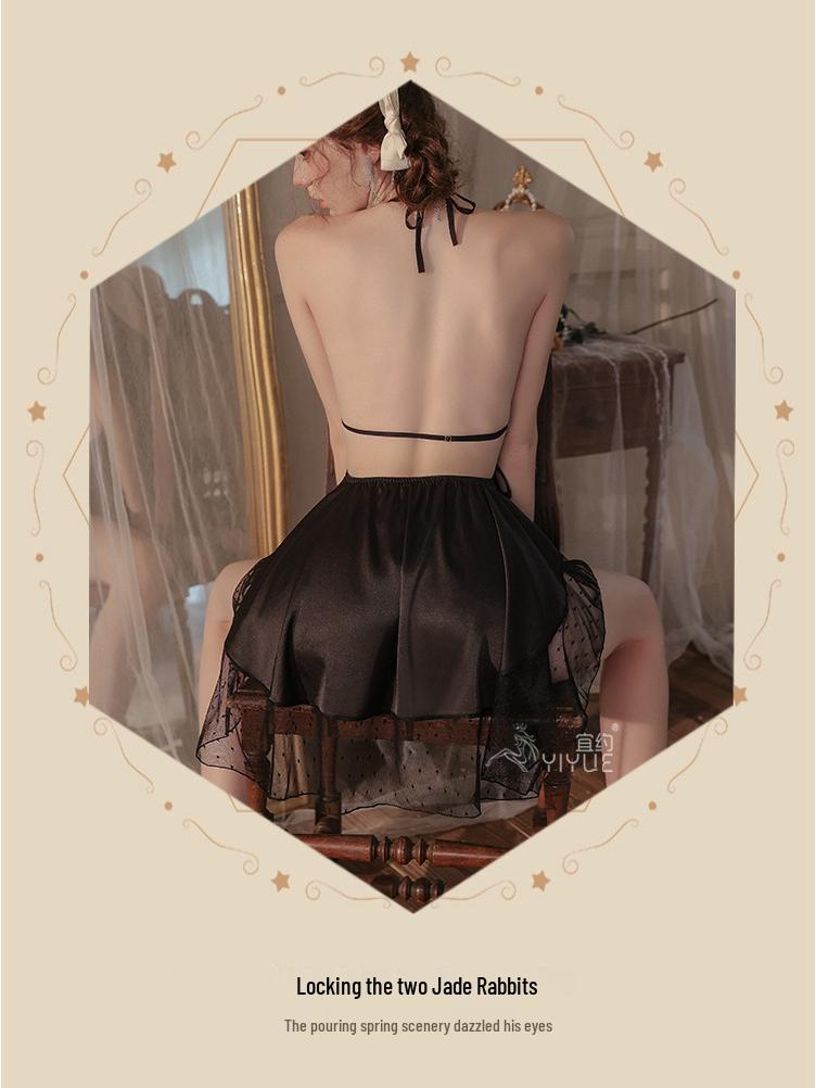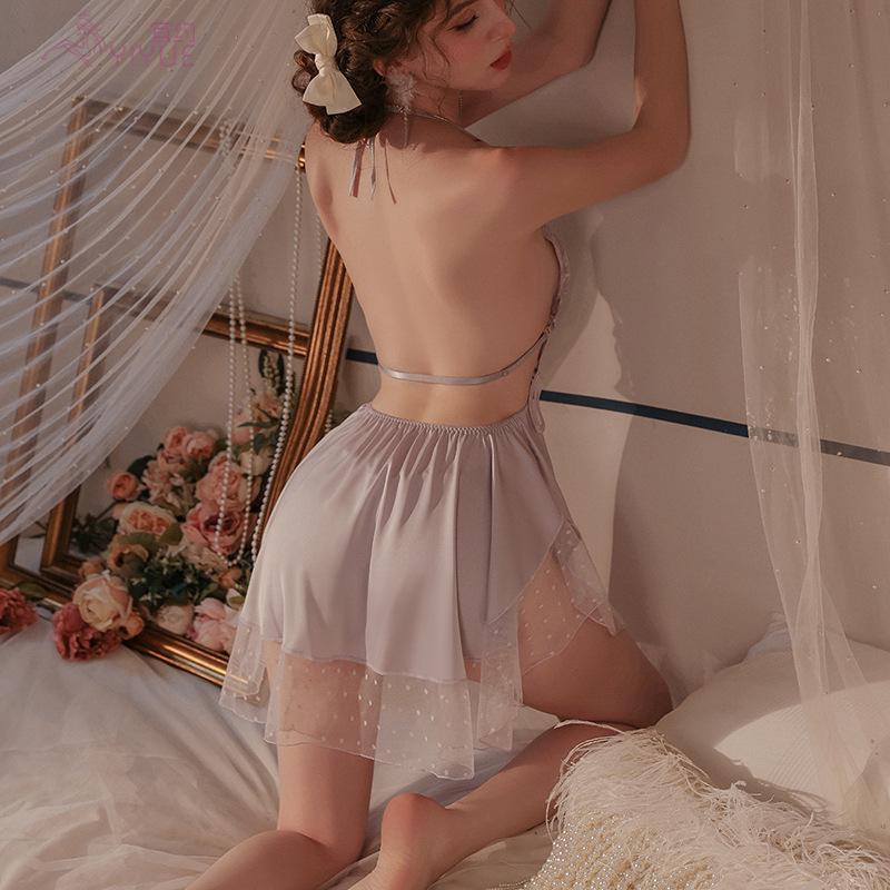 Комплект ночной сорочки из сатина Yi Yue: Сексуальное нижнее белье с нагрудными вкладышами и дизайном с открытой спиной