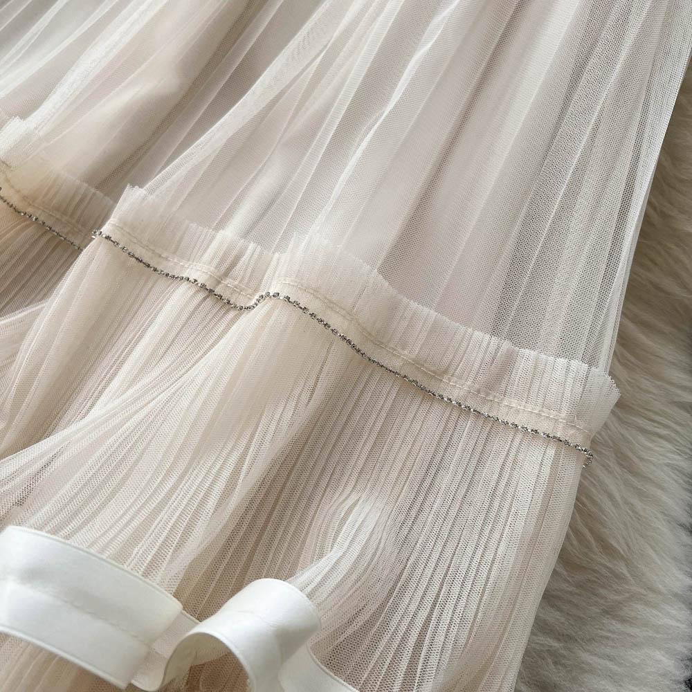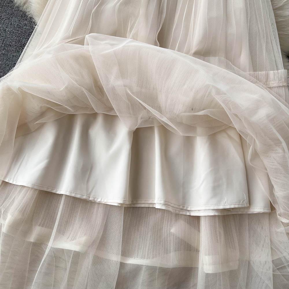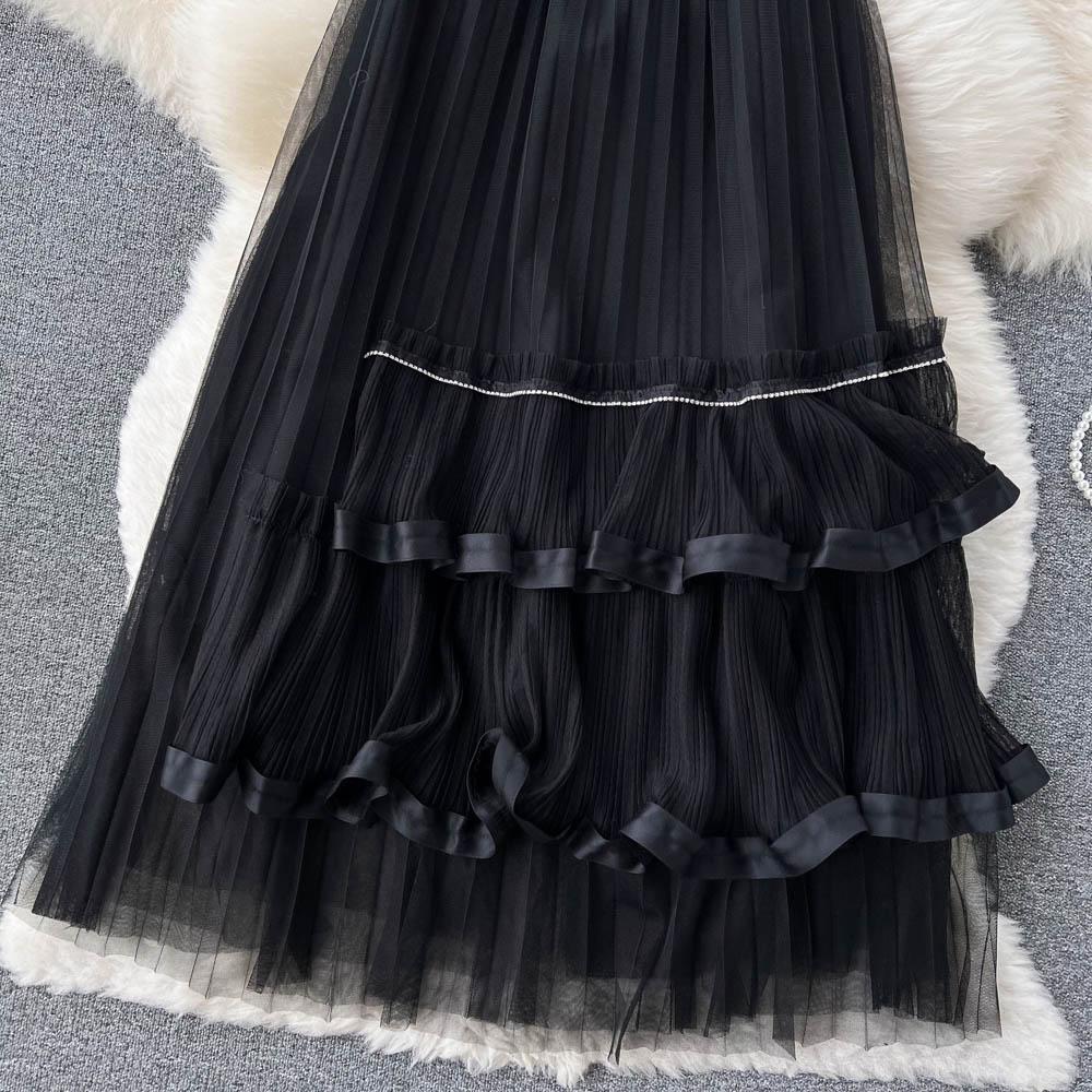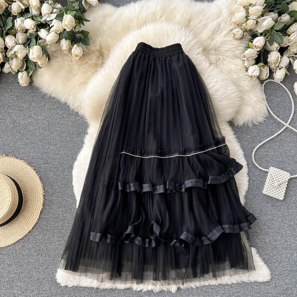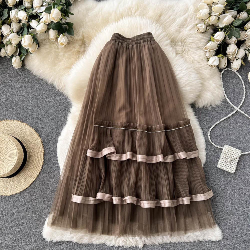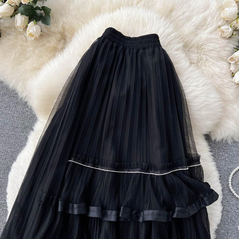 Весенняя супер сетчатая юбка женская средней длины плиссированная юбка-торт эластичная высокая талия А-силуэт юбка с большим клешем юбка-зонт