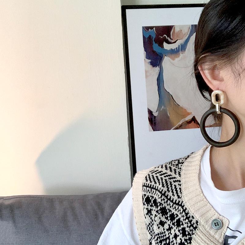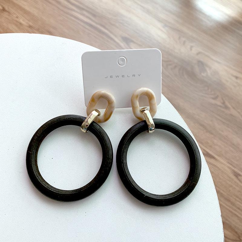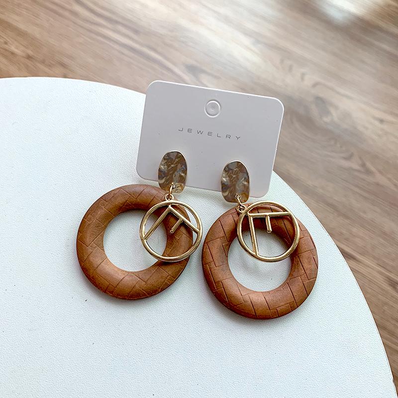Корейские ретро геометрические деревянные серьги-гвоздики с металлической подвеской в виде буквы D