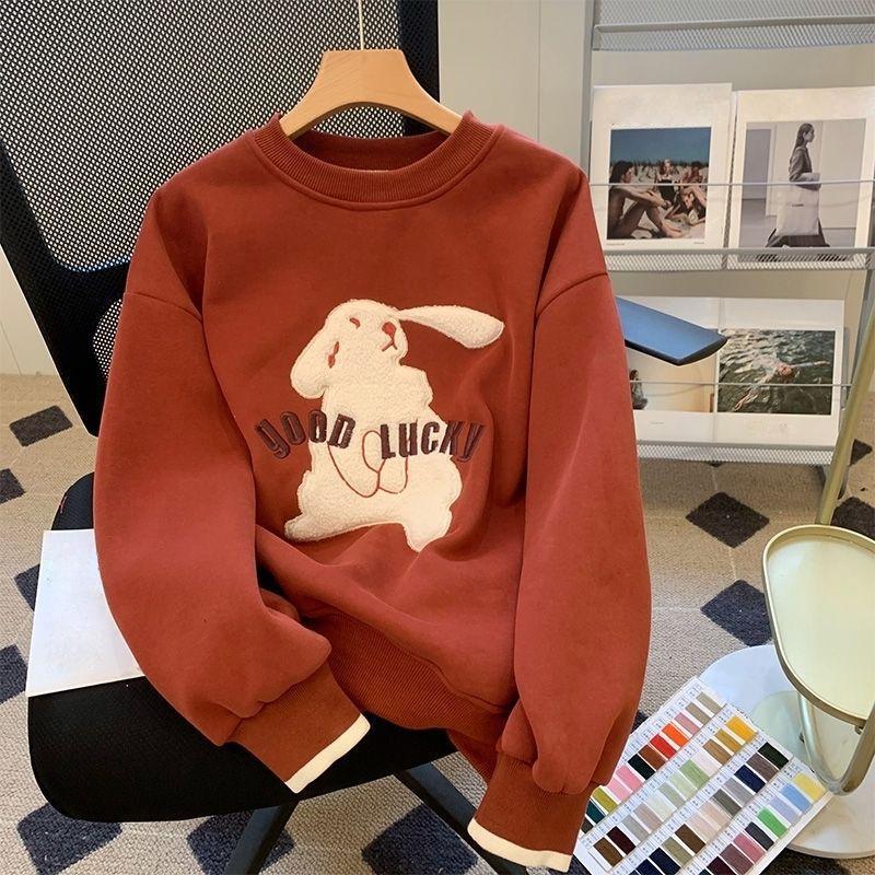 Женский осенне-зимний свитшот с кроликом, с чувством дизайна, американский ретро, маленький человек, с круглым вырезом, пуловер-топ