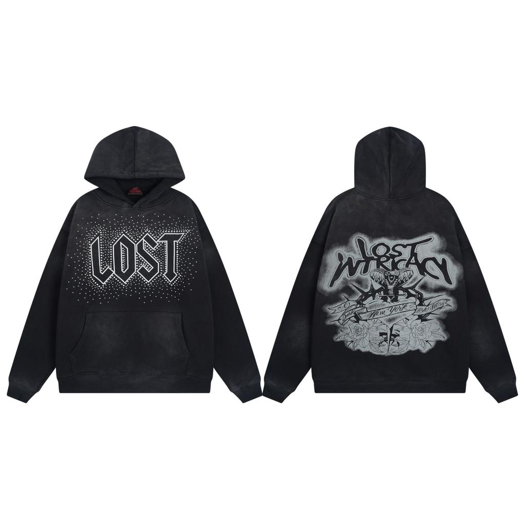 LOSTSHDWS Мужские и женские худи и толстовки из чистого хлопка, модного бренда, с горячим тиснением и стиркой для придания состаренного вида