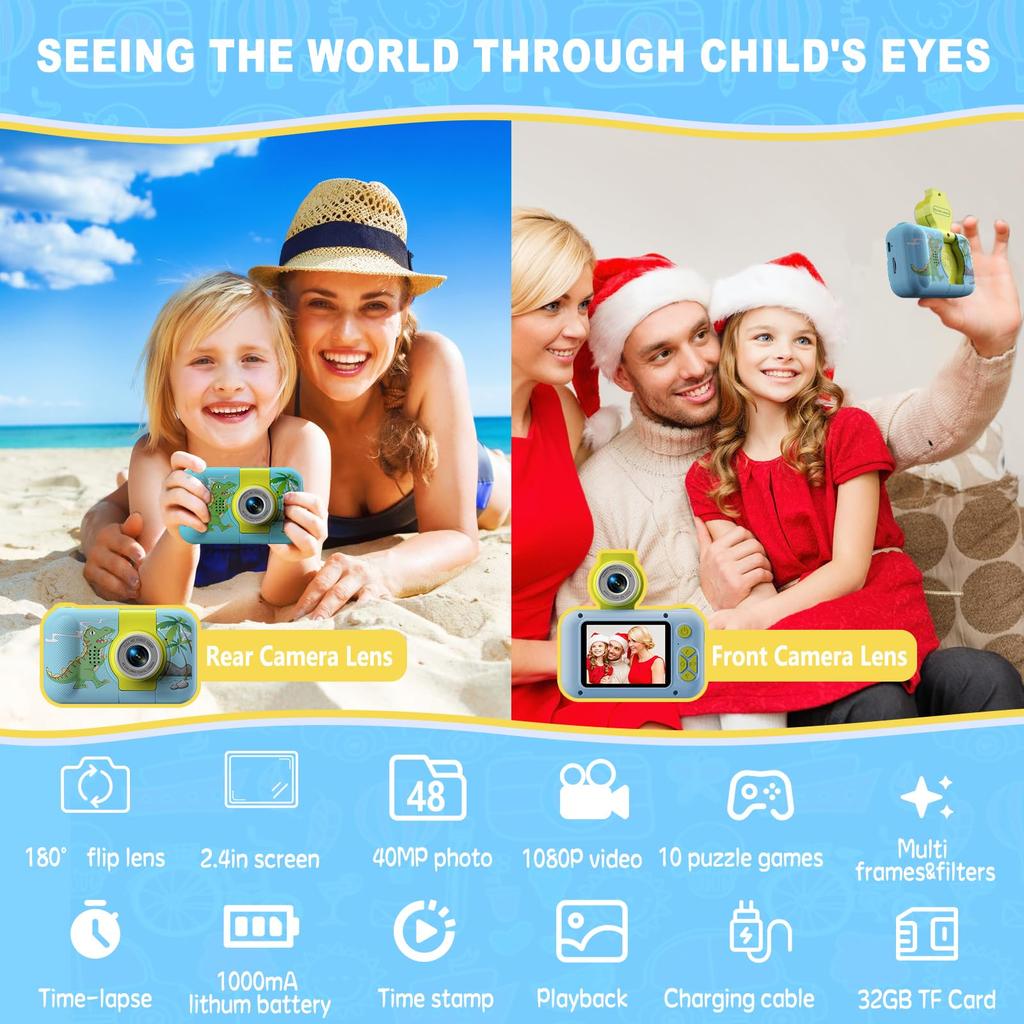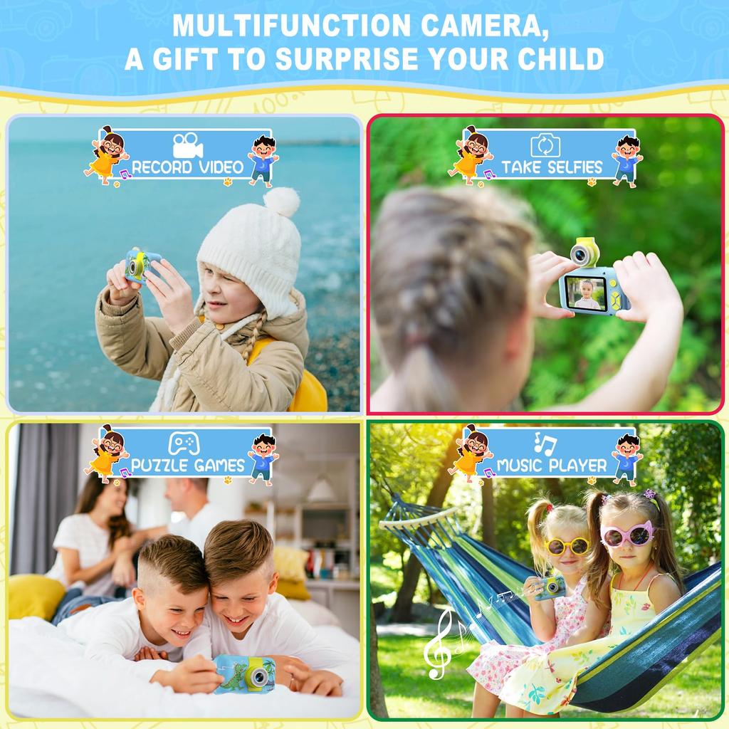 【180° откидной объектив, забавная складная селфи-камера】Оснащенная обновленным откидным на 180° объективом, режимами передней и задней камеры, ваш ребенок может мгновенно делать селфи, просто перевернув объектив камеры. Идеально для детей в возрасте 3, 4, 5, 6, 7, 8, 9, 10, 11 и 12 лет!