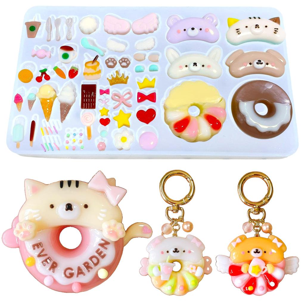 Оригинальные формы, созданные в сотрудничестве с популярной смолой. Включает 42 декоративные силиконовые формы для пончиков с животными для изготовления миниатюрной смолы и ручной работы