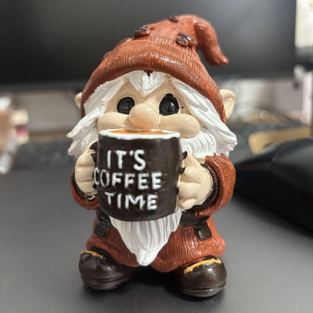 Уникальная статуэтка гнома из смолы, настольное украшение, забавная фигурка гнома с кофе, кухня