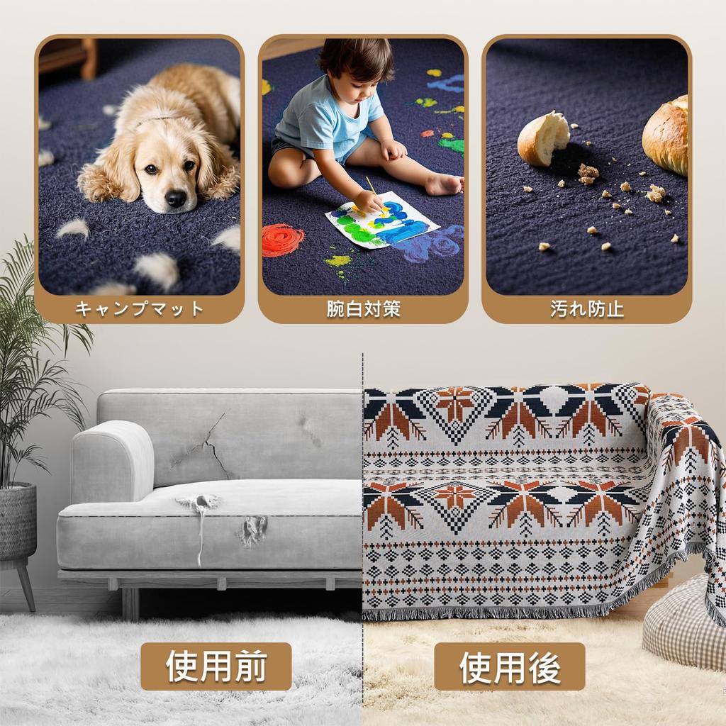 Универсальный чехол на диван TMVOK, Прямоугольный, 130*180см, с подлокотниками или без, с бахромой, Защитный чехол, устойчивый к пятнам, Защищает от собак и кошек, Хлопок, для 1-2 мест, Кемпинг, Скатерть, Чехол на диван, Двусторонний, Стирающийся, Подходит для всех сезонов