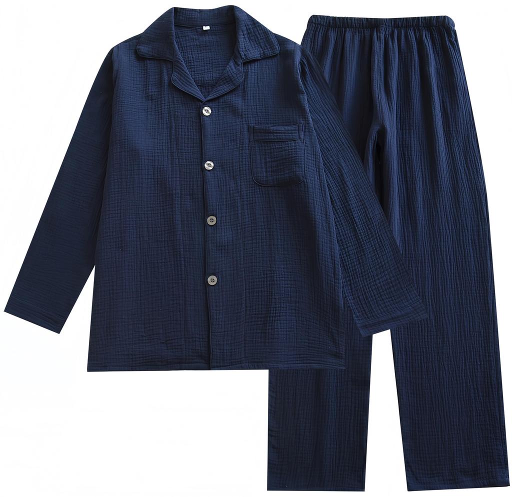 Хлопок Jomoku Двойной Короткий Длинный и Мягкий и Удобный Сверху и Снизу Удобный для Лета Мужская Пижама, 100% Марля, Рукав, Рукав,