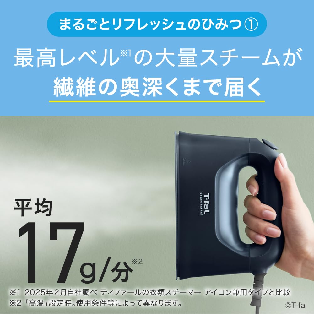 Steam Clothing Refreshes Your Clothes with and Disinfects Handheld Matte DV8076J0 [Online Exclusive] T-fal Iron, 2-Way Steamer, One-Push Steam,