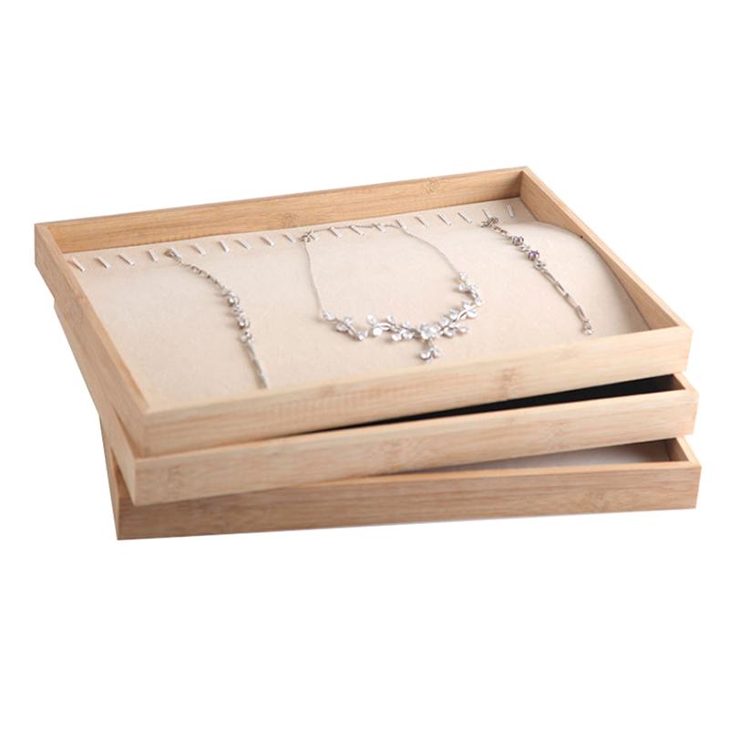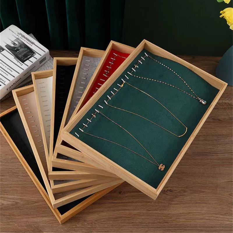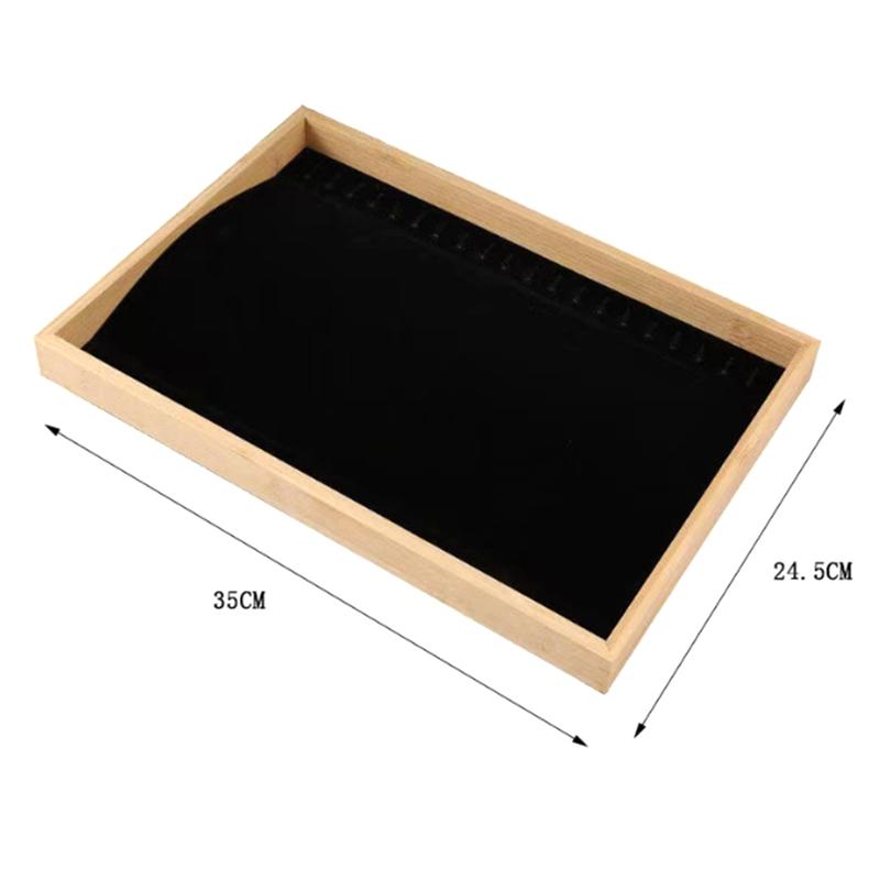 Бархатный бамбуковый лоток для демонстрации ювелирных изделий, органайзер для колец, серег, ожерелий, браслетов, подвесок, лоток для хранения ювелирных изделий для ящика